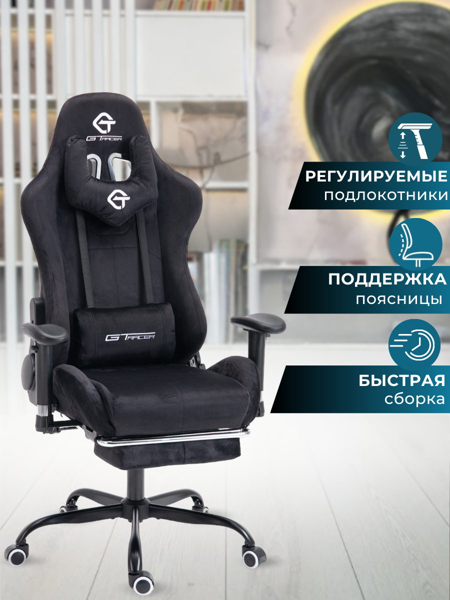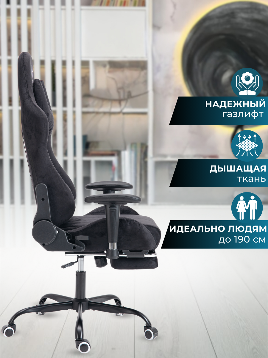 Игровое компьютерное кресло с подставкой для ног (черное) информация: