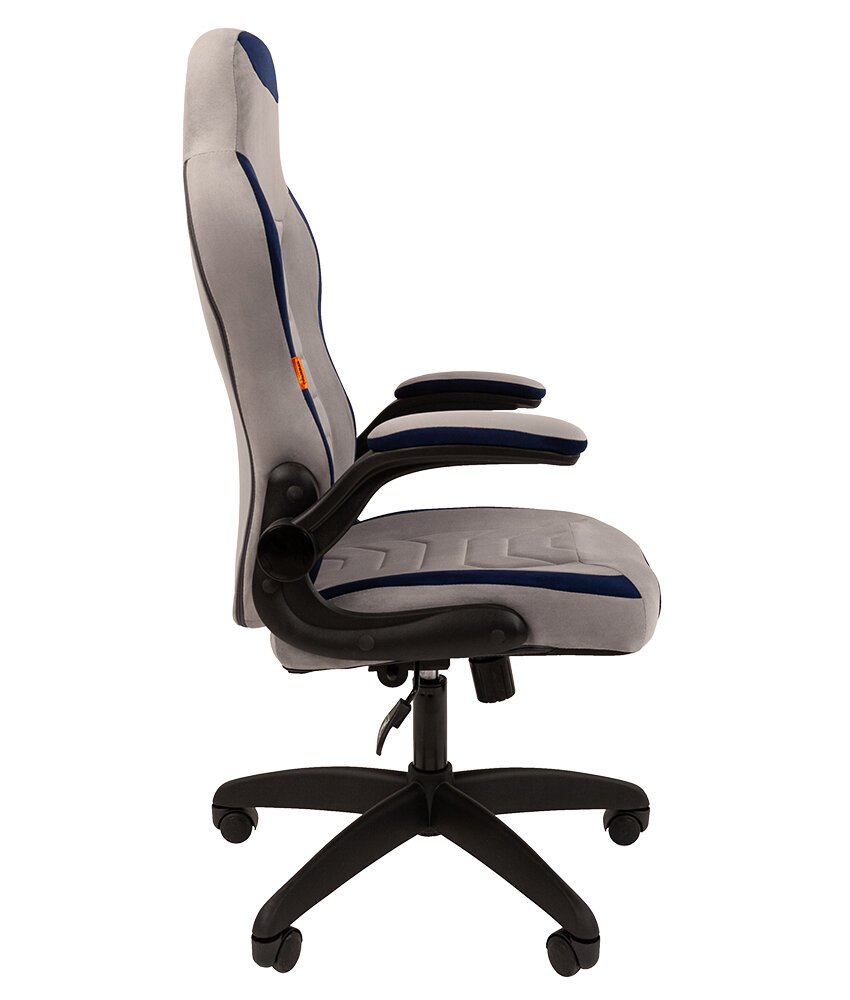 Игровое компьютерное кресло CHAIRMAN GAME 50, велюр, серый/синий, с откидными подлокотниками