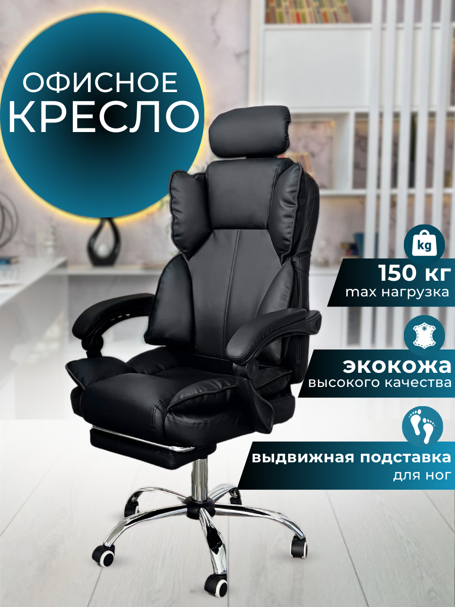 10 цен на Офисное черное кресло с подставкой для ног из экокожи