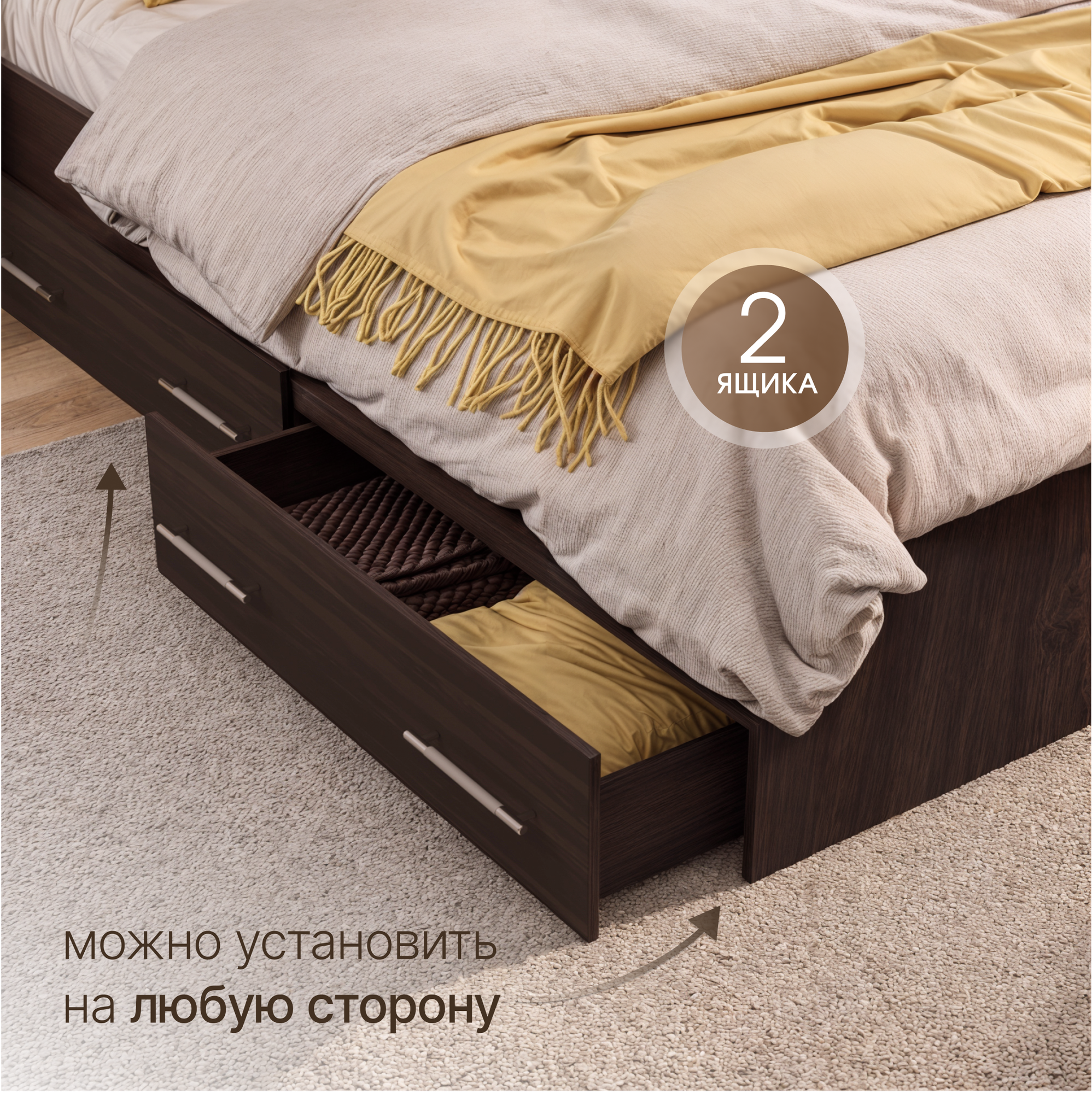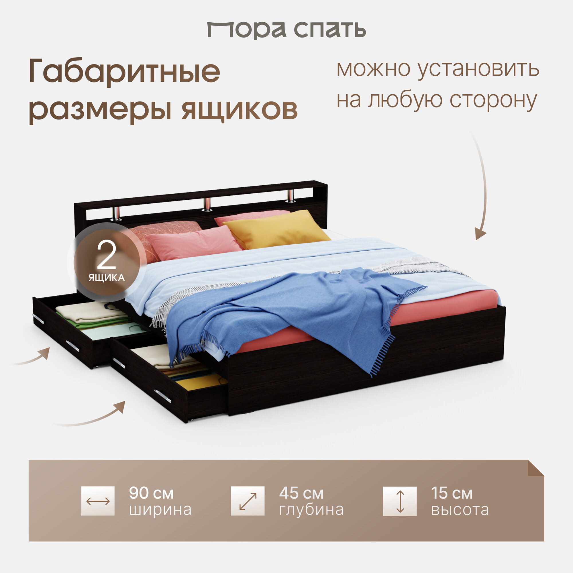 Кровать двуспальная Пора Спать Арина с ящиками и основанием ДСП, Венге, спальное место: 200х160 см, габариты: 220х167 см 11 159 ₽