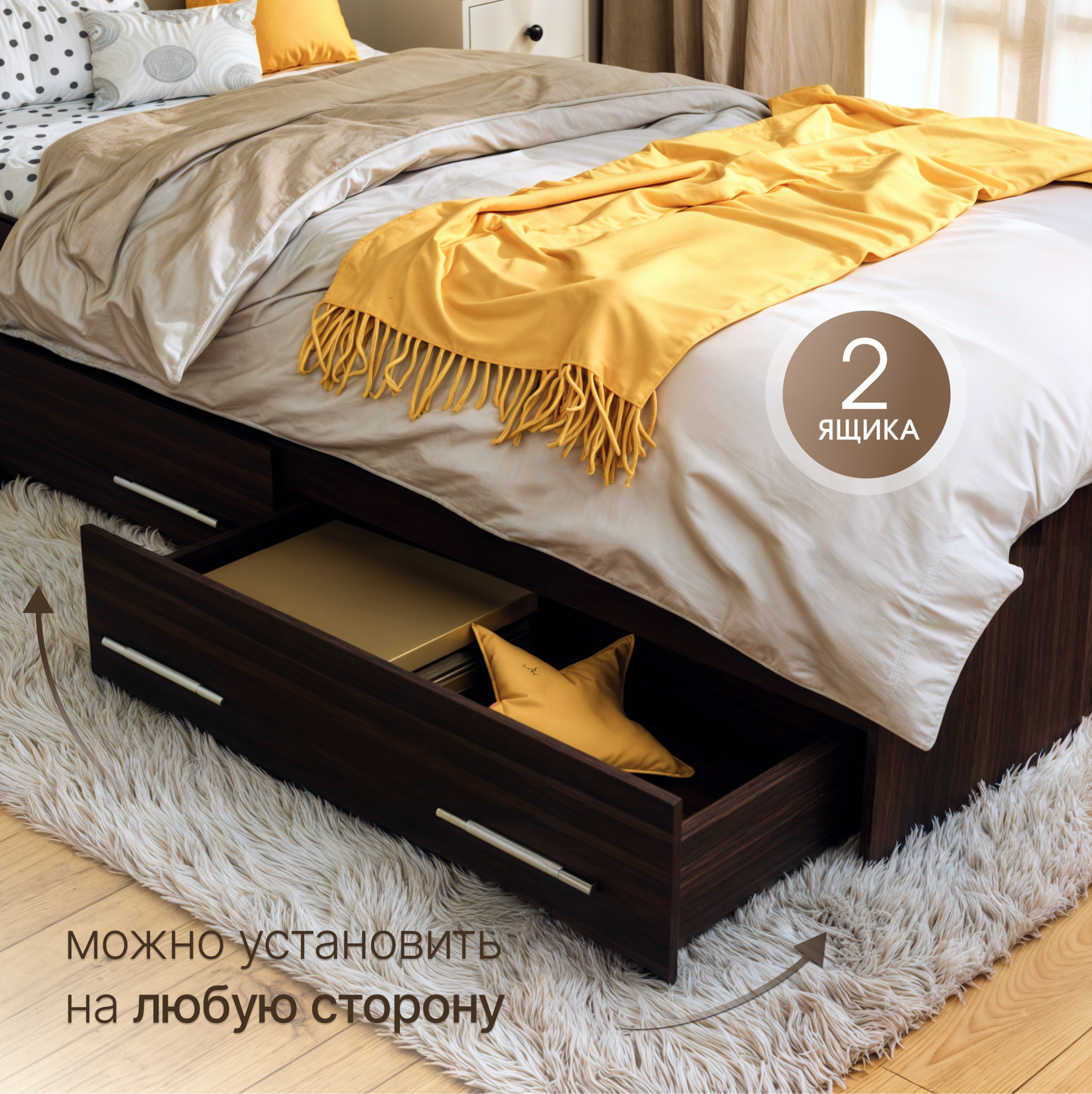 Кровать двуспальная Пора Спать Арина с ящиками и основанием ДСП, Венге, спальное место: 200х160 см, габариты: 220х167 см 11 159 ₽