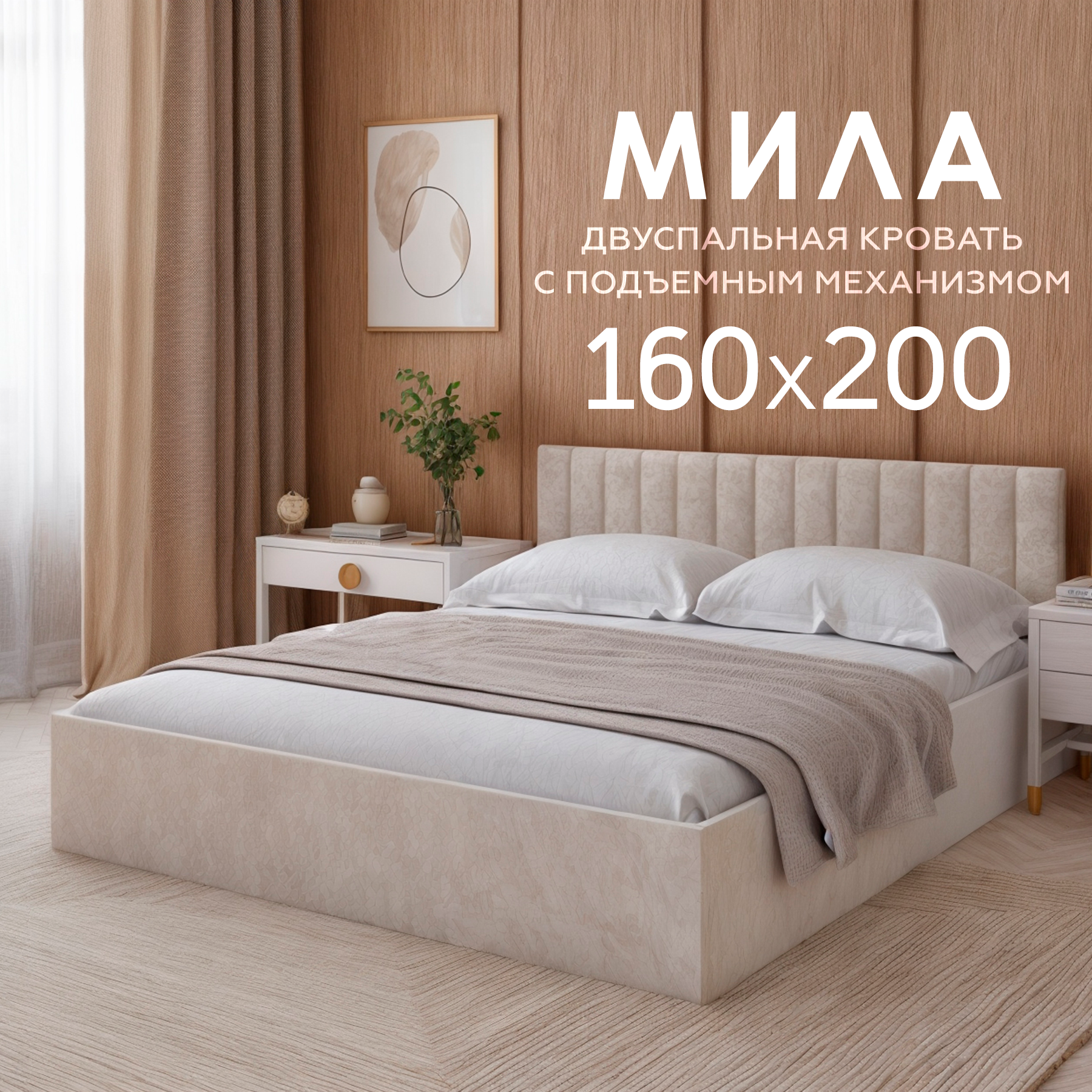 Двуспальная кровать Пора Спать, Мила, с подъемным механизмом, спальное место: 180х200см, габариты: 188х208см, цвет: бежевый 23 740 ₽