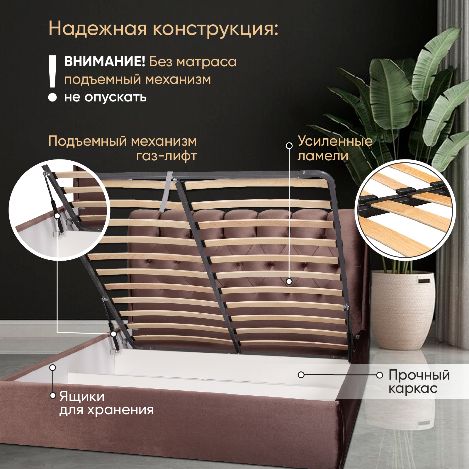 Отзывы на Кровать 160х200 с подъемным механизмом двуспальная, Империя с мягким изголовьем для дома и спальни, ортопедическое основание, ламели усиленные, ящик для белья, бархат коричневый, Ами Мебель Беларусь