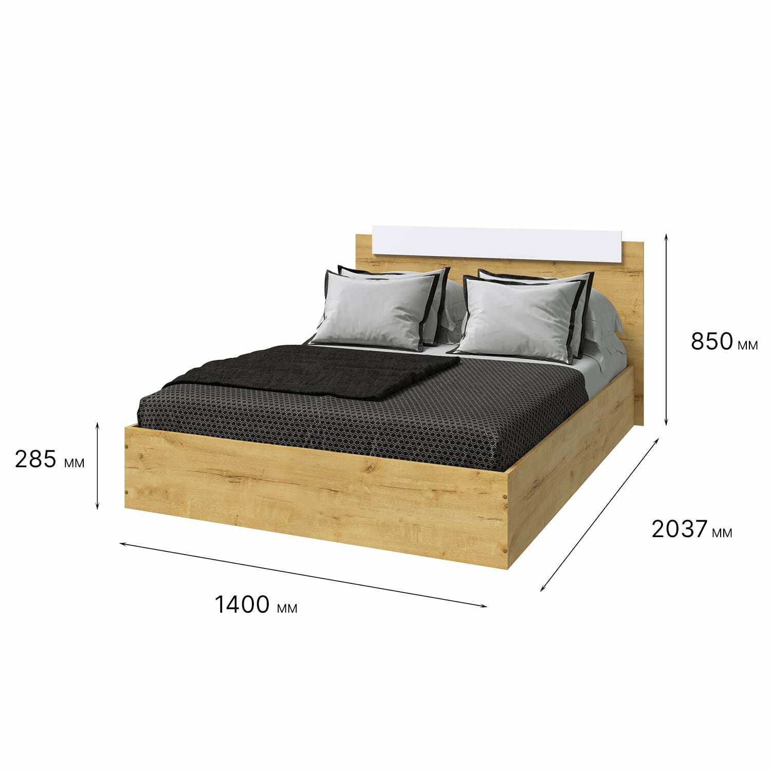 Двуспальная кровать Эко 1,4 м Дуб Вотан/Белый гладкий информация: