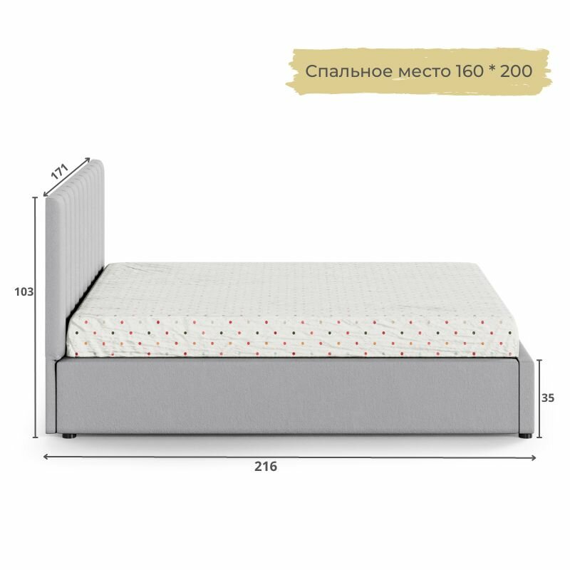 Кровать двуспальная Олимпия 160х200 мягкая серая с подъемным механизмом информация: