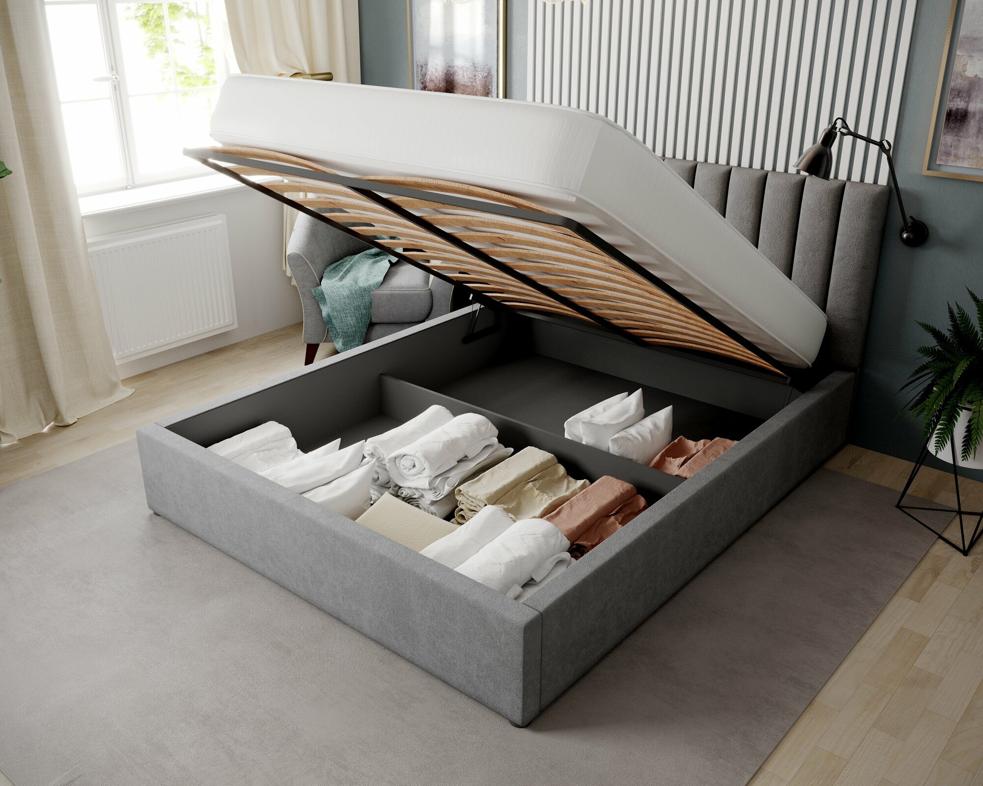 | Особенности | мягкое изголовье, с подъемным механизмом, с ящиком для белья |