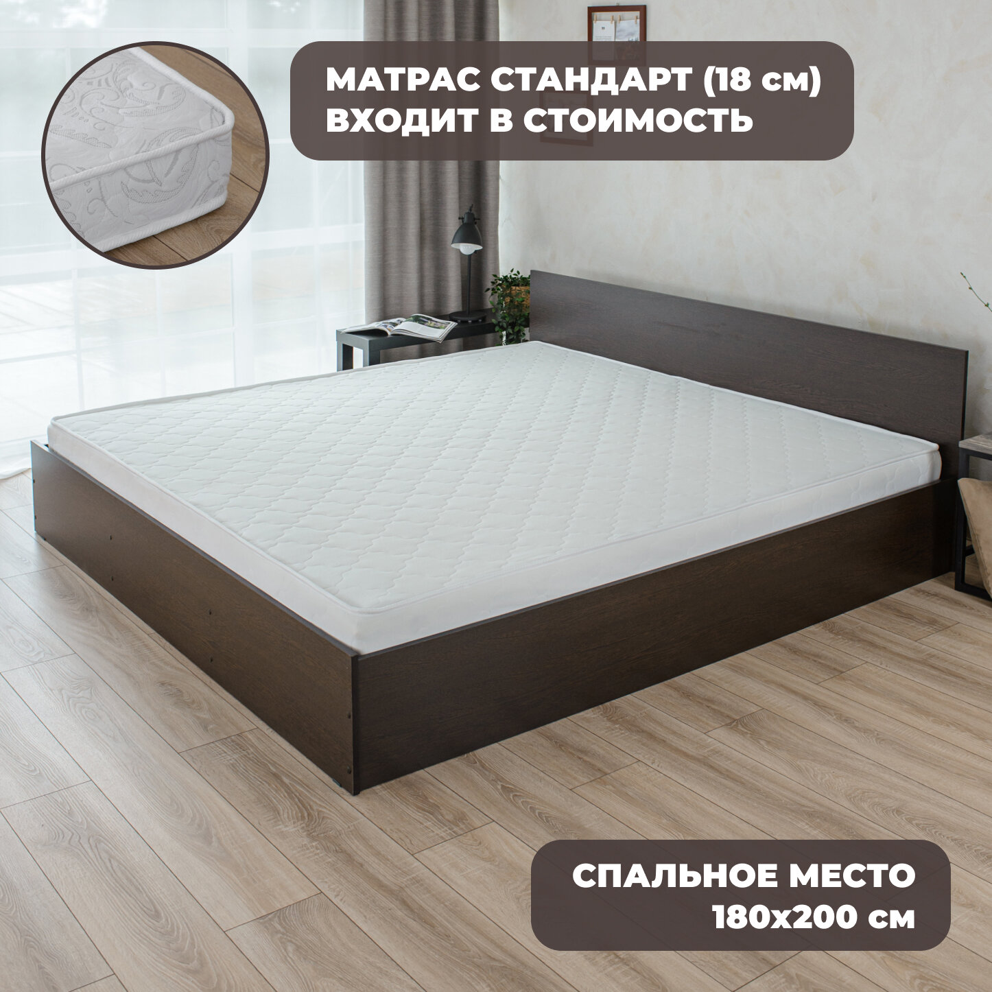 Двуспальная кровать Марс с матрасом Стандарт (18 см), 180х200 см информация: