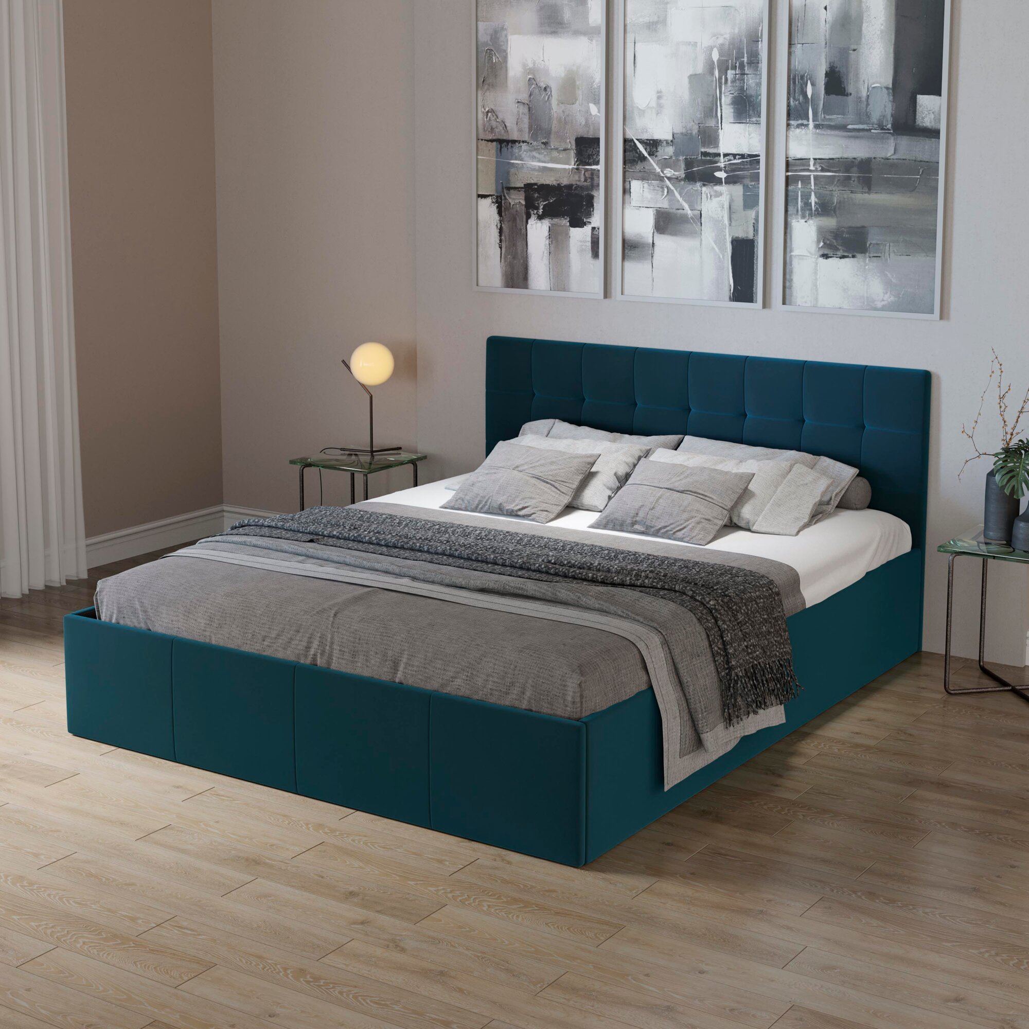 Кровать с подъемным механизмом, с мягкой обивкой и заглушиной синяя 160х200 Эмма (Велюр Confetti Blue) 23 999 ₽