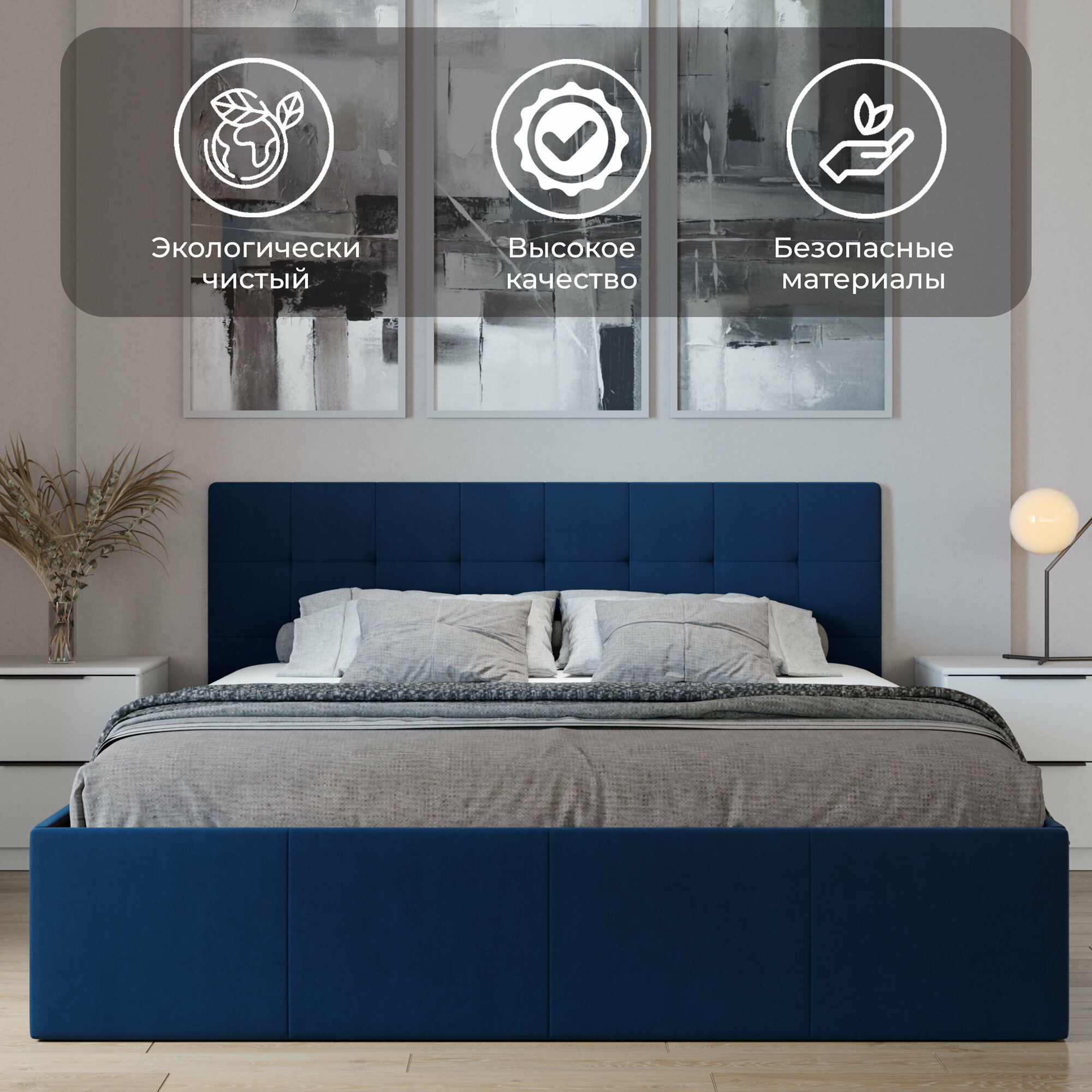 10 цен на Кровать с подъемным механизмом, с мягкой обивкой и заглушиной синяя 160х200 Эмма (Велюр Confetti Blue)