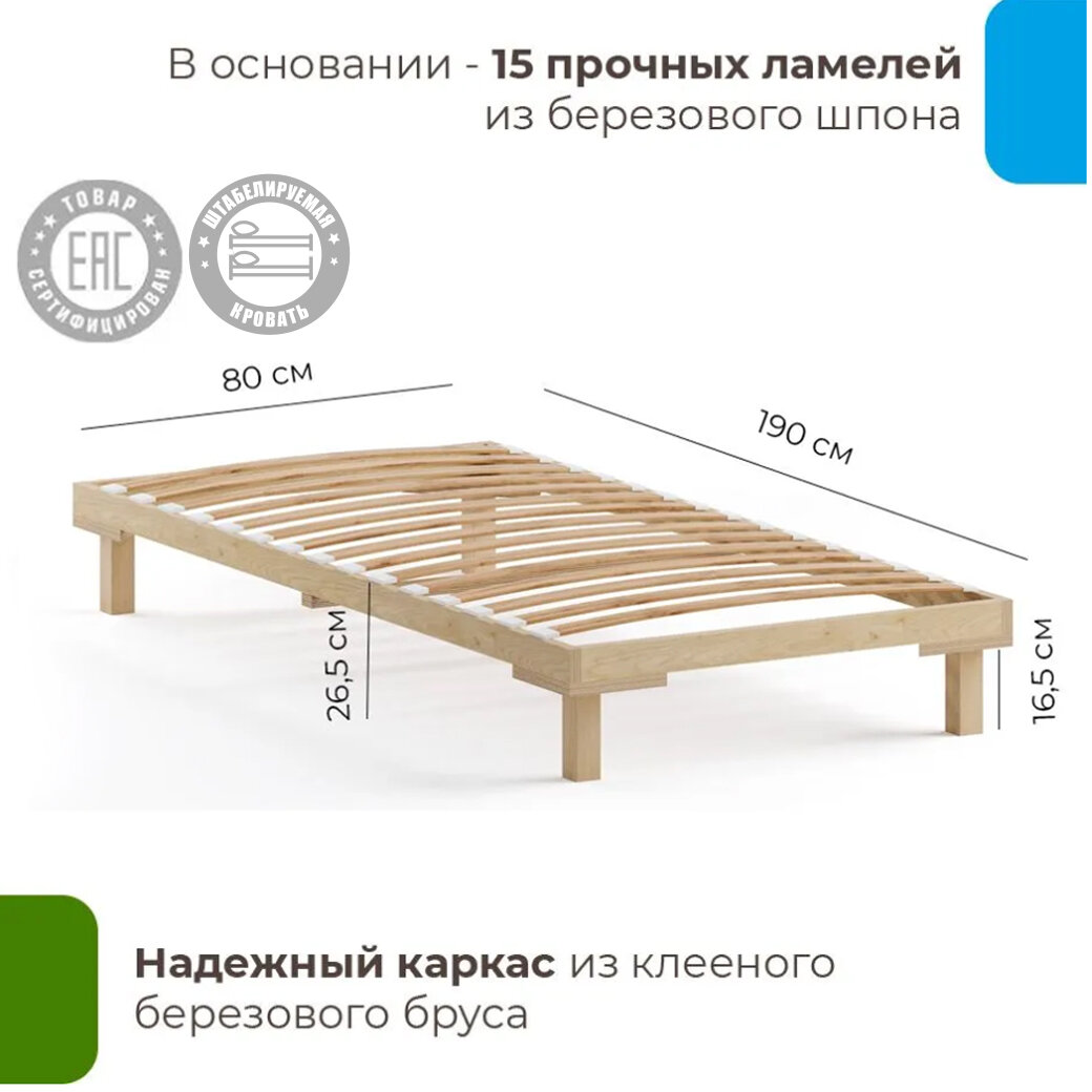 Кровать деревянная без спинки Канапе Люкс Альфафлекс 80х200, цвет натуральный 12 515 ₽