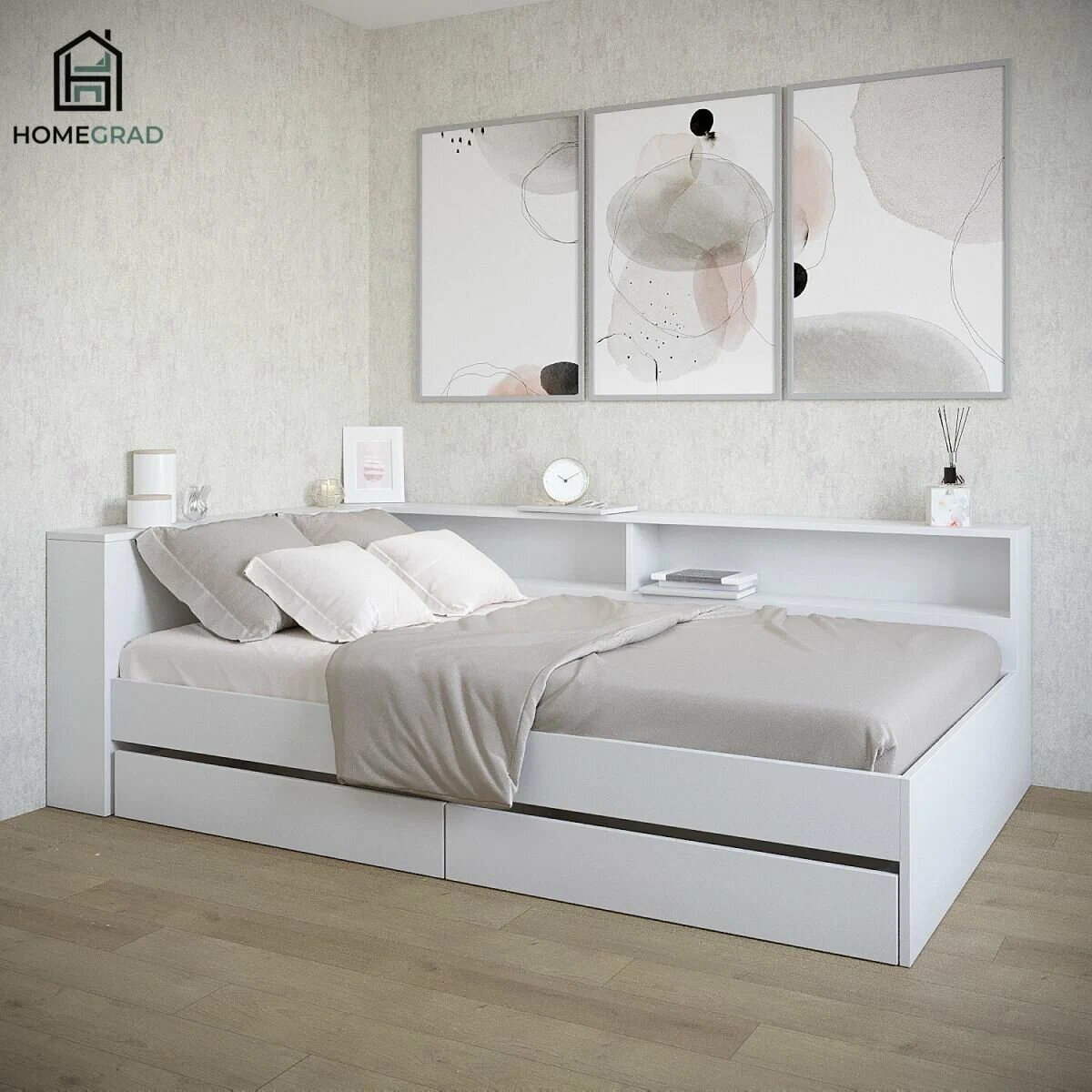 Кровать с прикроватным блоком с ящиками HomeGrad Ksenia,1200х2000, белый информация: