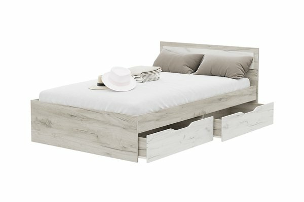 Кровать Скайс ящиками белый текстурный, 140х200 см