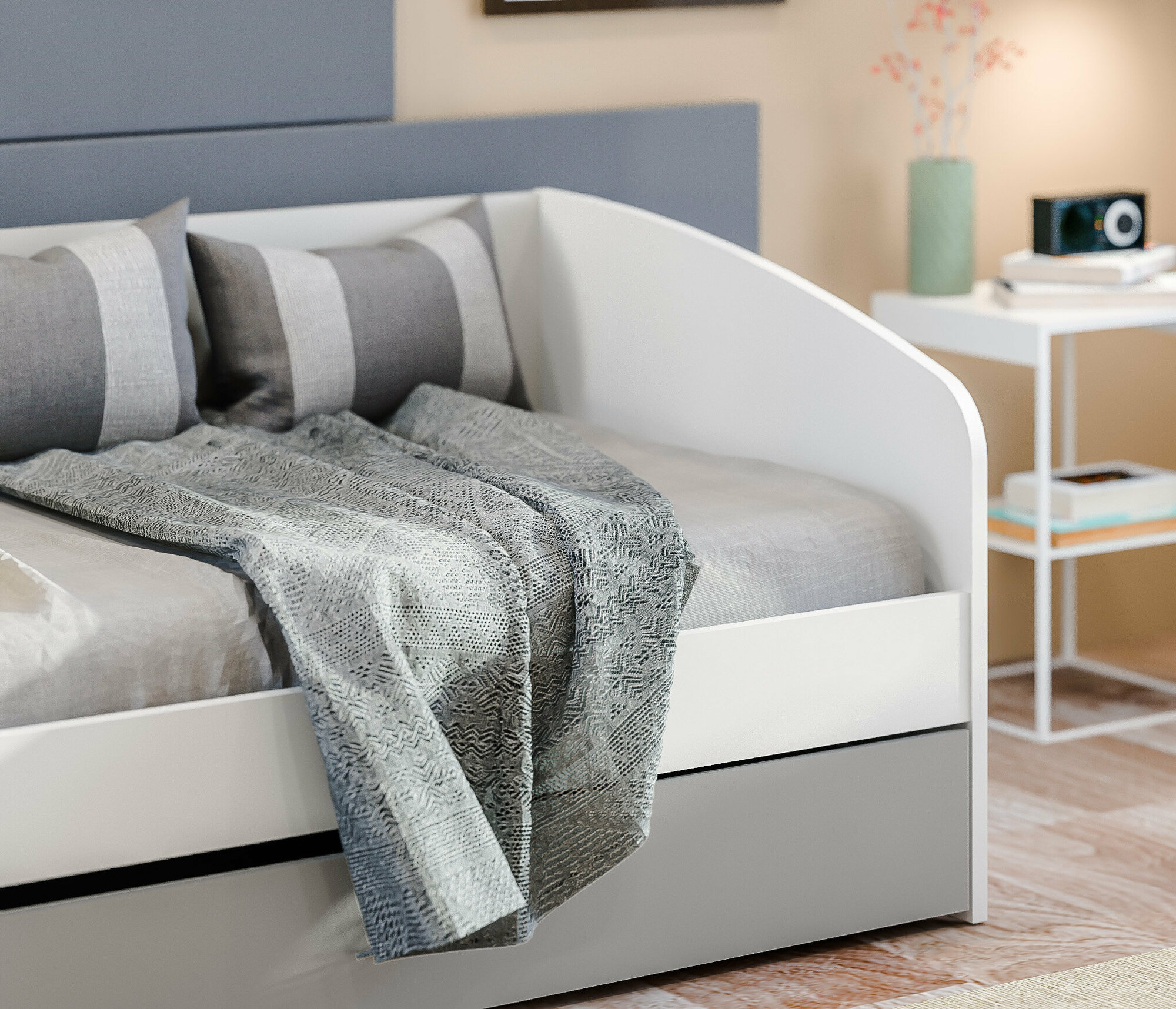 10 цен на Односпальная кровать столплит Mika СБ-3280 с основанием, без матраса, без ящика, Белый/Серый 205х78х95 см