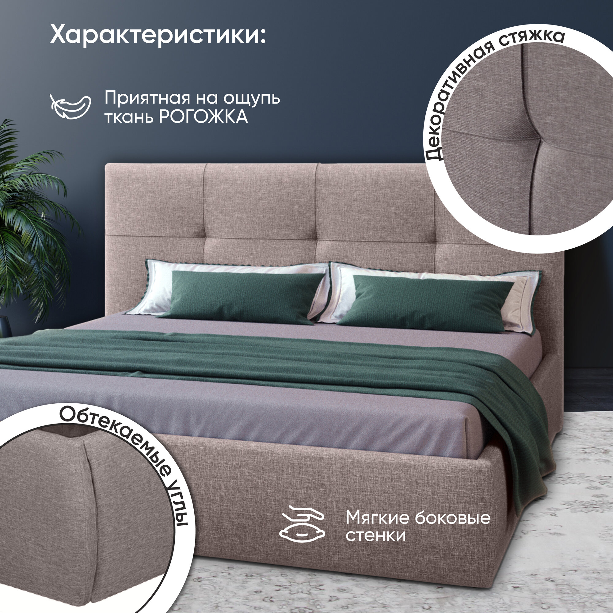 | Особенности | мягкое изголовье, с изножьем, с подъемным механизмом, с ящиком для белья, усиленная конструкция |