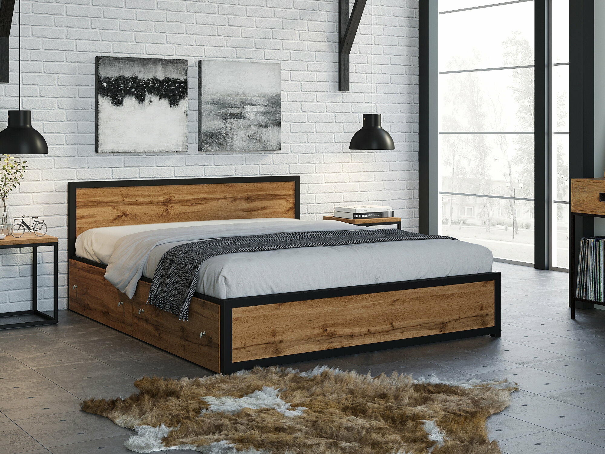 Кровать Титан Лофт 160 с ящиками черный/дуб крафт табак информация: