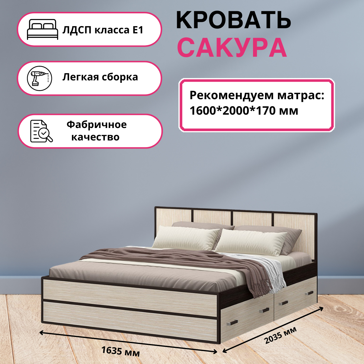 Кровать "Сакура" 1,6*2,0 м информация: