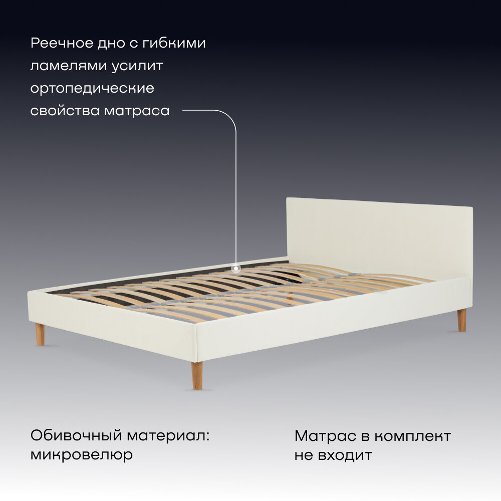 Двуспальная кровать buyson BuyStyle 200х160 см, микровелюр, слоновая кость 23 816 ₽