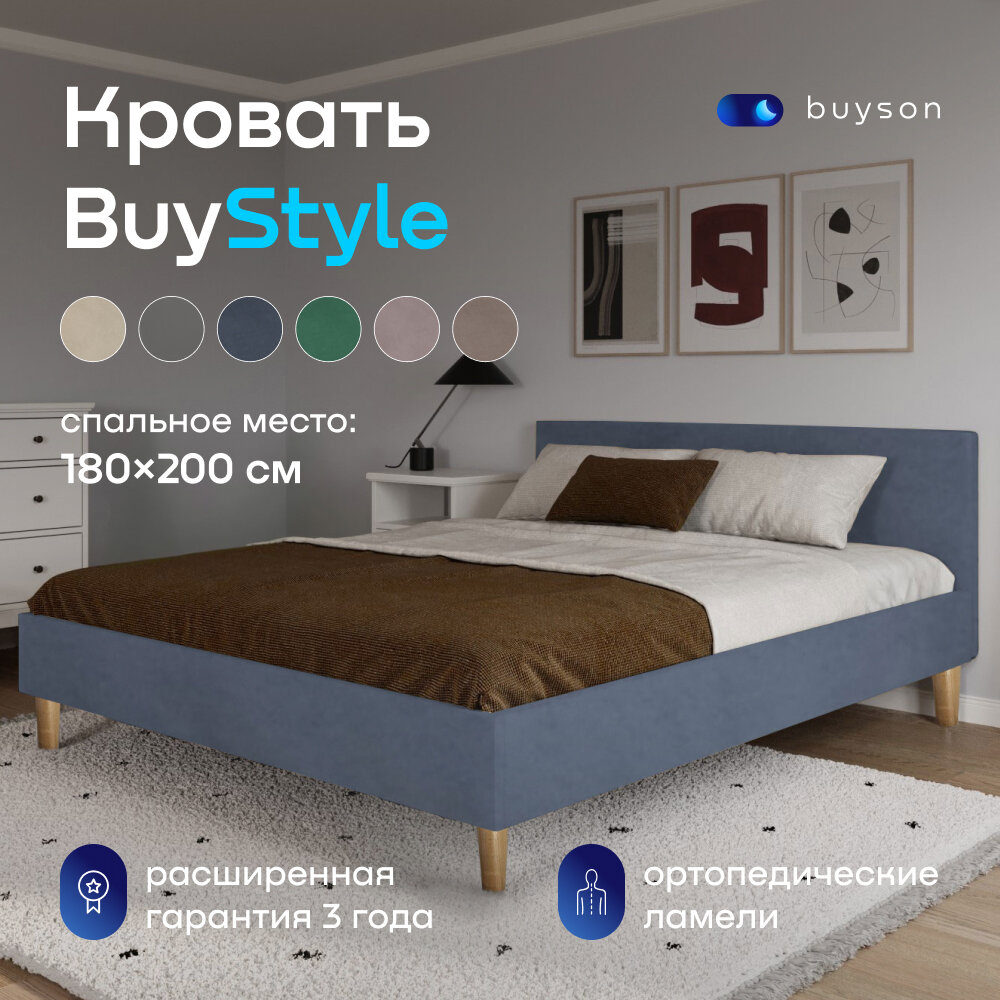 Отзывы на Двуспальная кровать buyson BuyStyle 200х180 см, серо-синий, микровелюр