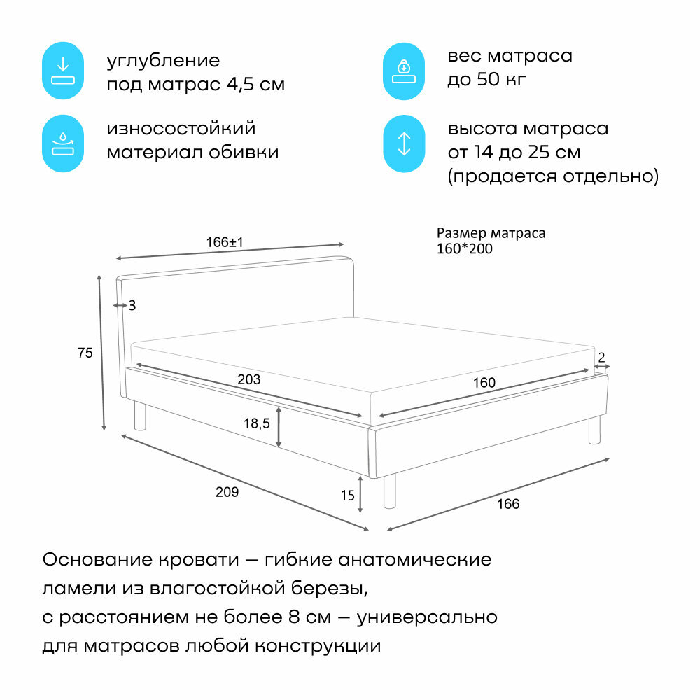 Двуспальная кровать buyson BuyStyle 200х160 см, микровелюр, темно-серый информация: