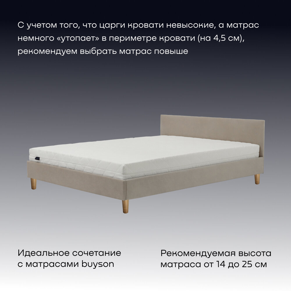 Двуспальная кровать buyson BuyStyle 200х180 см, микровелюр, бежевый информация: