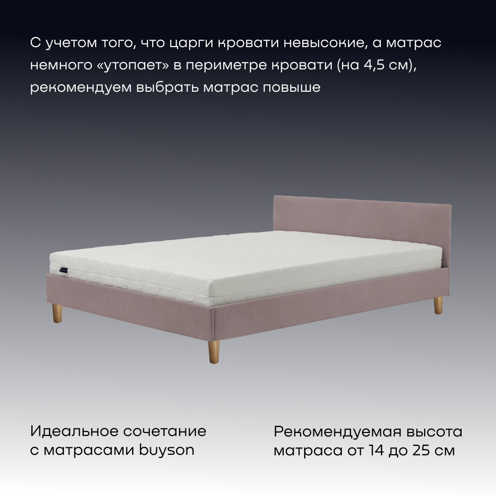 Двуспальная кровать buyson BuyStyle 200х140 см, микровелюр, пудровый информация: