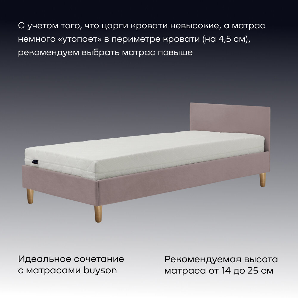 Односпальная кровать buyson BuyStyle 200х90 см, микровелюр, пудровый информация: