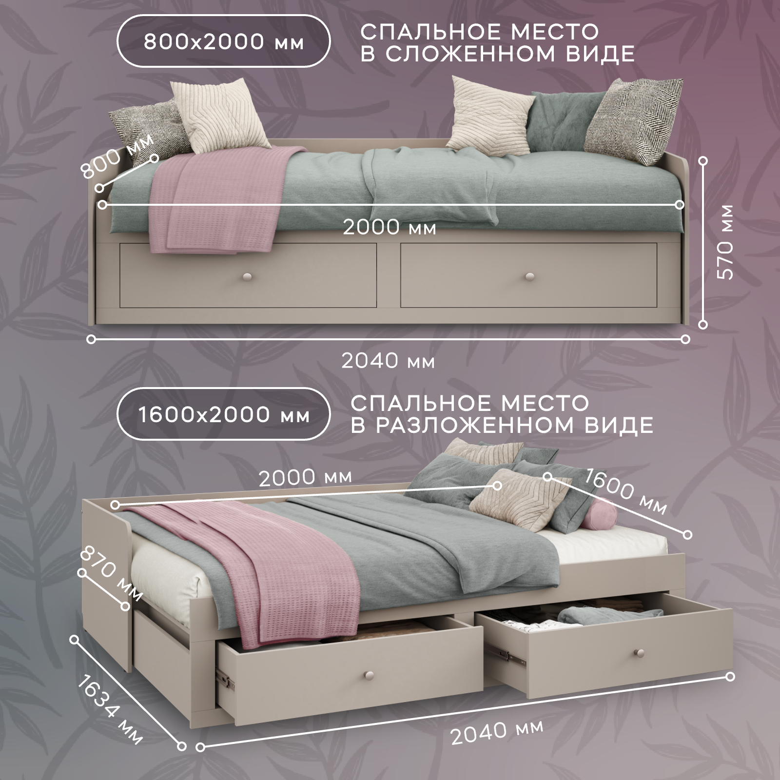 Кровать раздвижная Олива серый 80х200/160х200, без матраса информация: