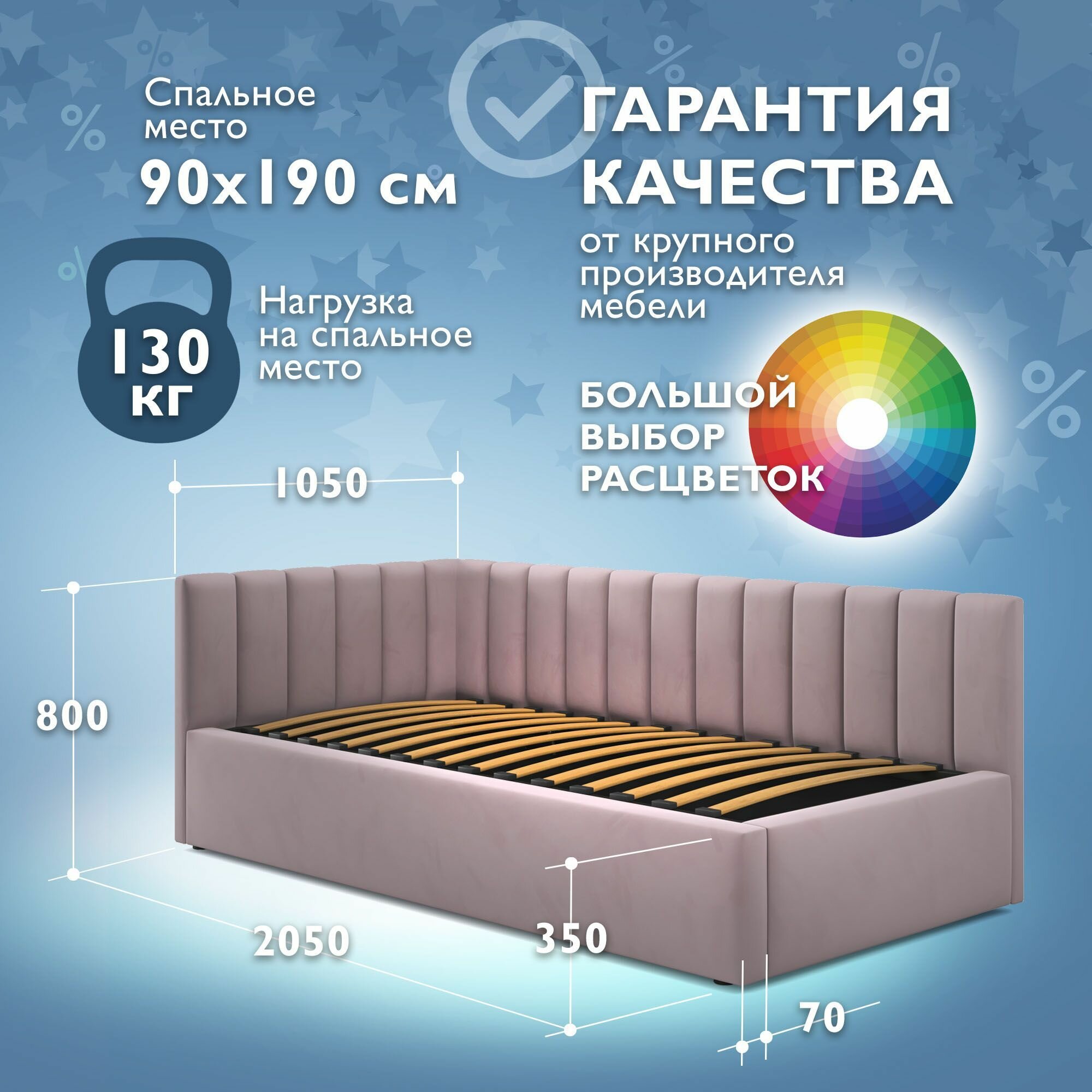Отзывы на Кровать 90х190 односпальная с матрасом, угловая тахта с мягкой спинкой "MERLIN-CORAL" детская