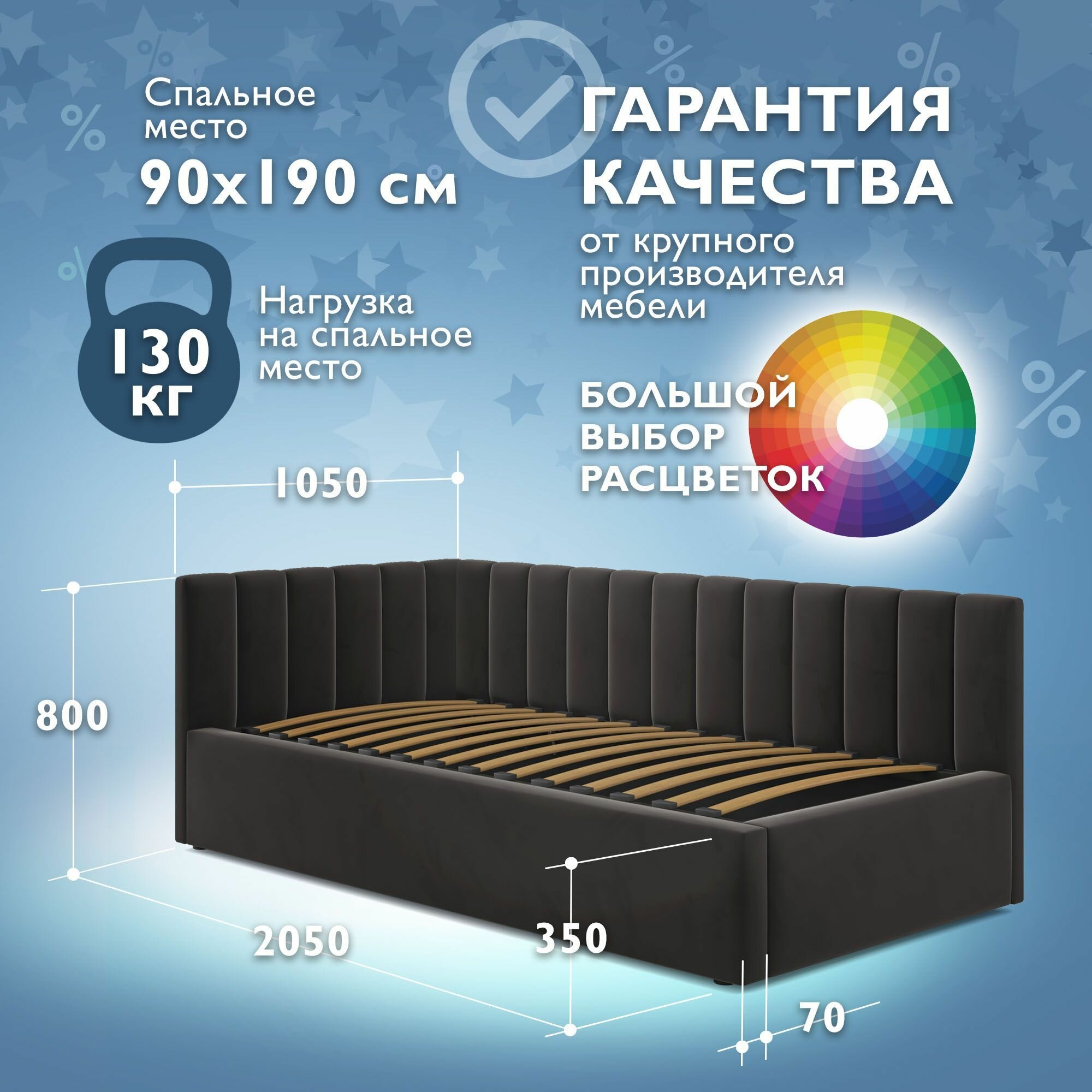 Отзывы на Кровать 90х190 односпальная с матрасом, угловая тахта с мягкой спинкой "MERLIN-CHOKOLATE" детская