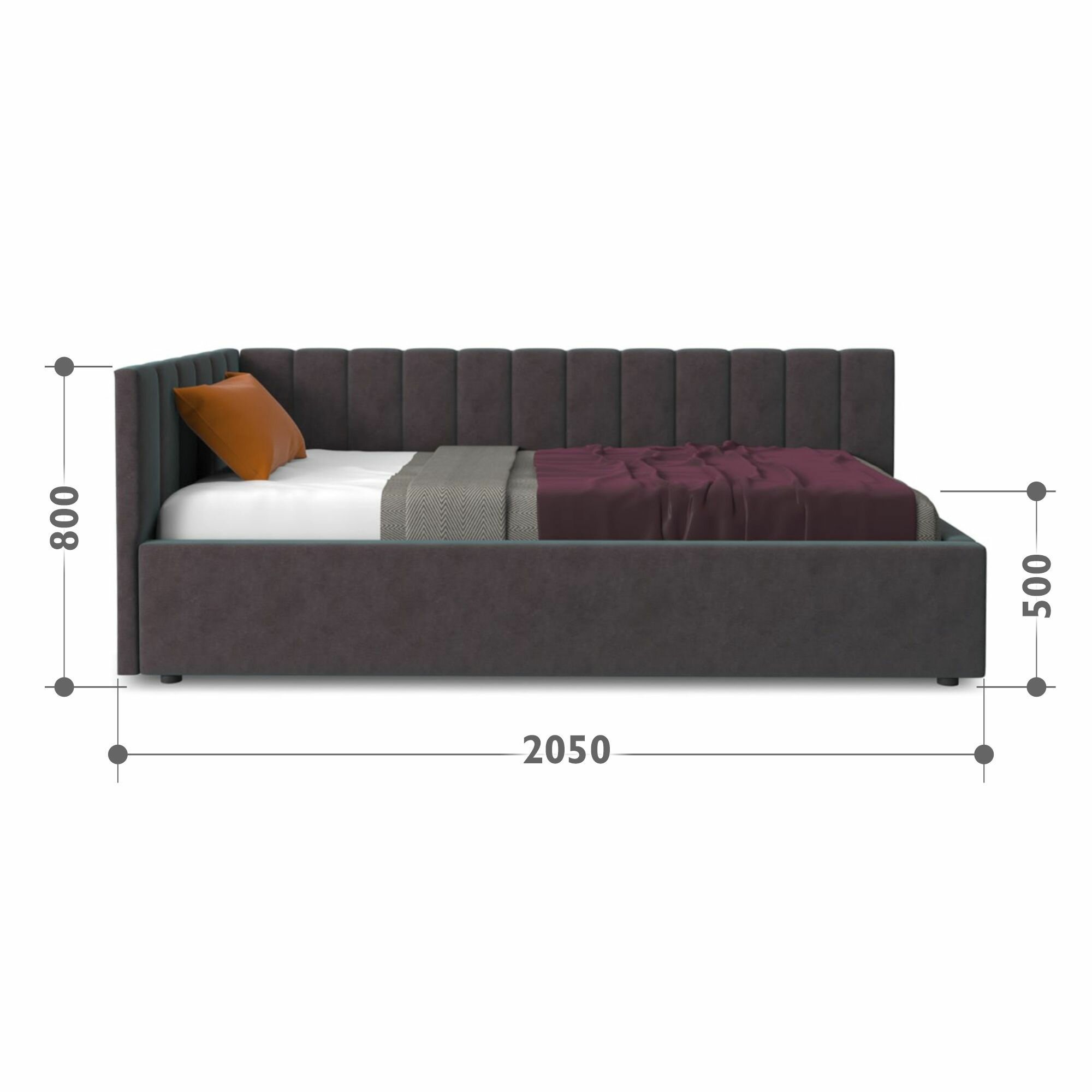Односпальная угловая кровать с матрасом, Тахта 90х200 с мягкой спинкой "MERLIN-DARK"