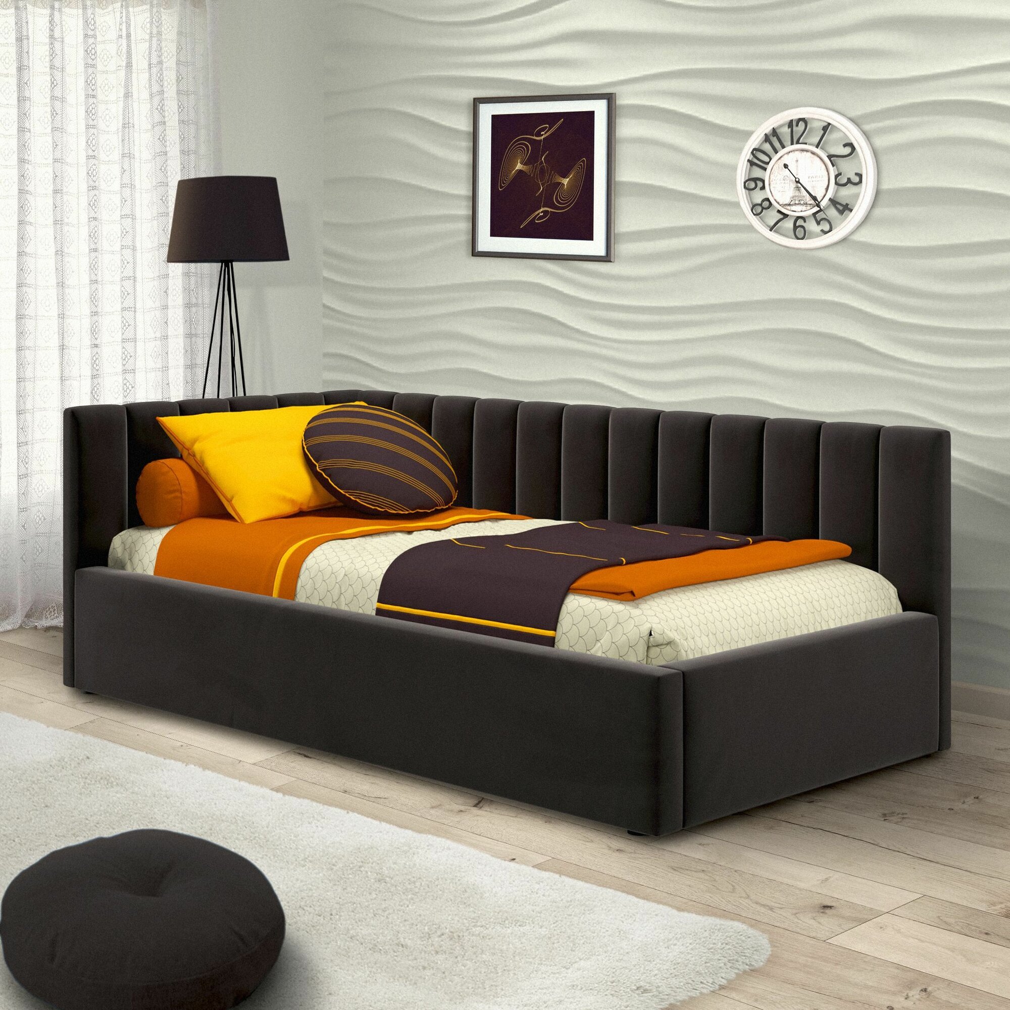 Односпальная угловая кровать с матрасом, Тахта 90х200 с мягкой спинкой "MERLIN-DARK" 29 990 ₽