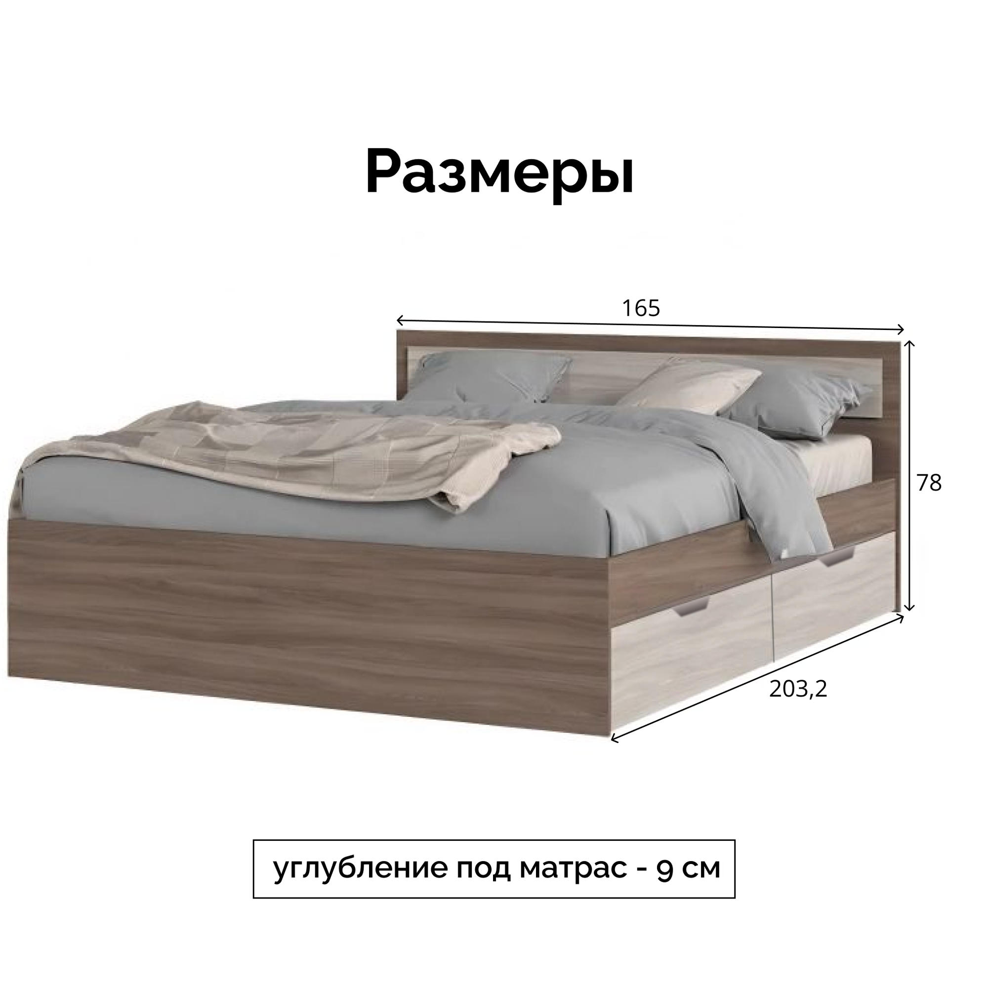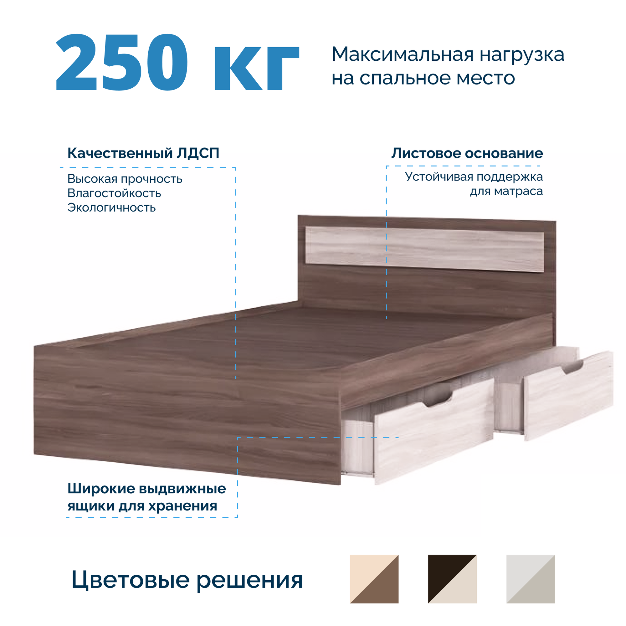 Двуспальная Кровать С Ящиками 160х200 шимо темный/шимо светлый - СМ0761 информация: