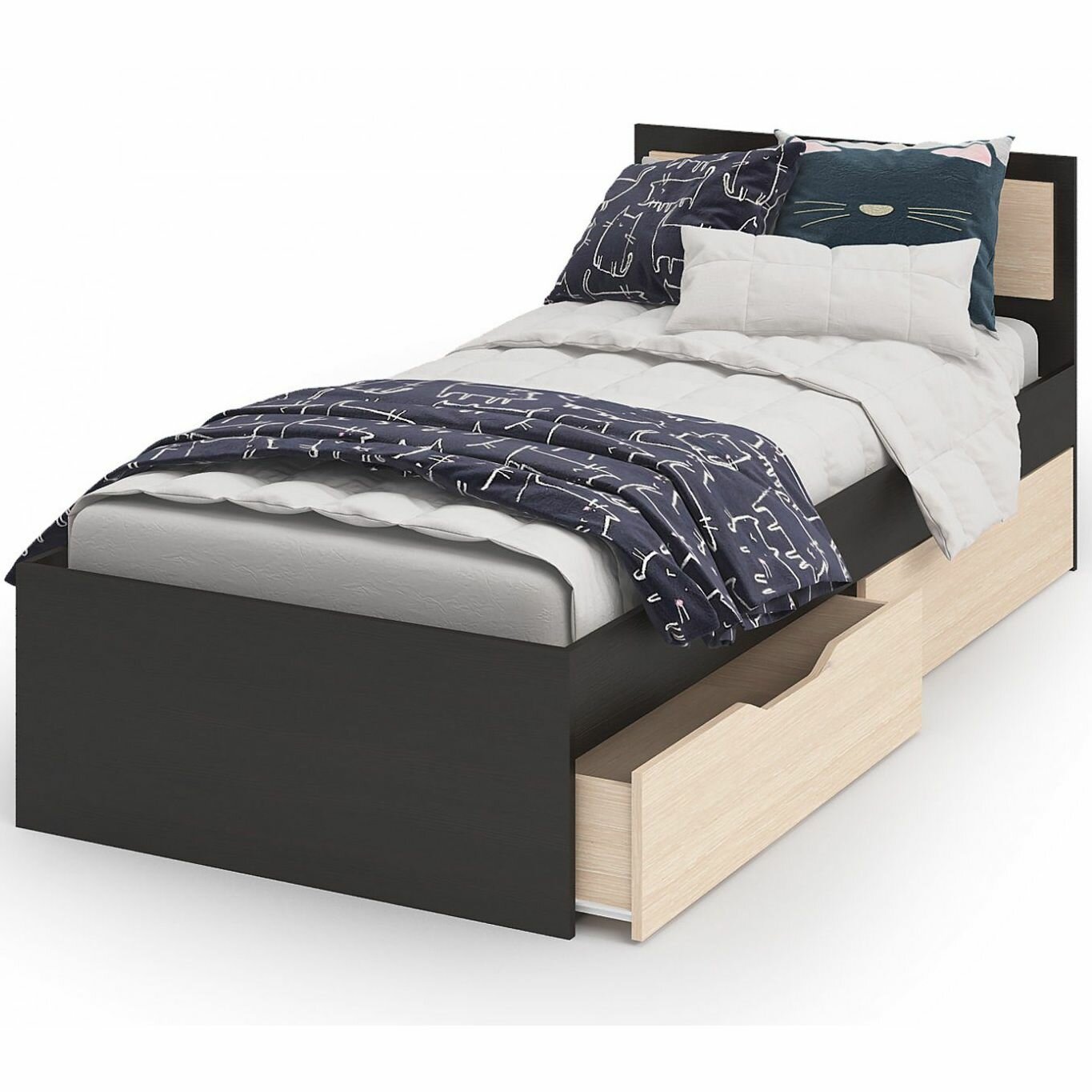 Кровать с ящиками 80х200 Ясень шимо темный/светлый - СМ1224