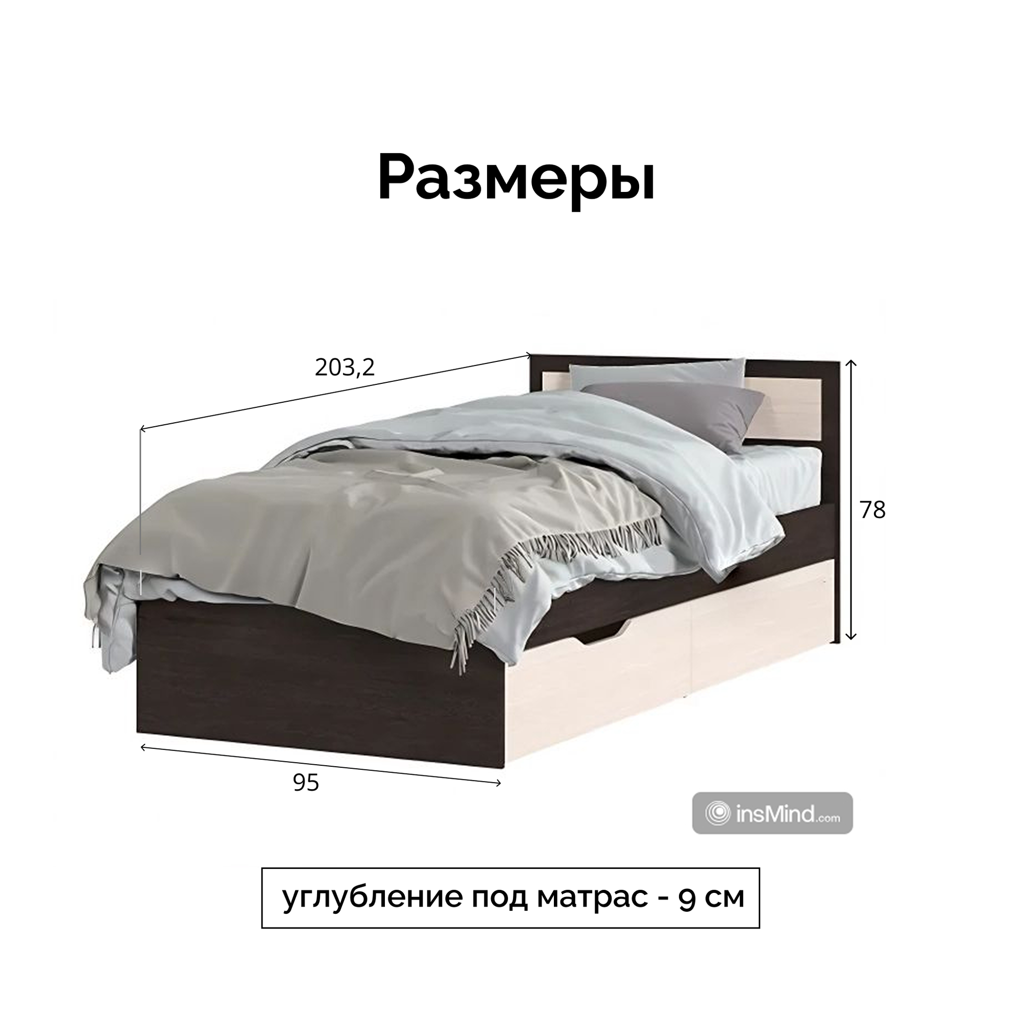 Односпальная Кровать 90х200 С Ящиками Венге/Белфорд - СМ0193 информация: