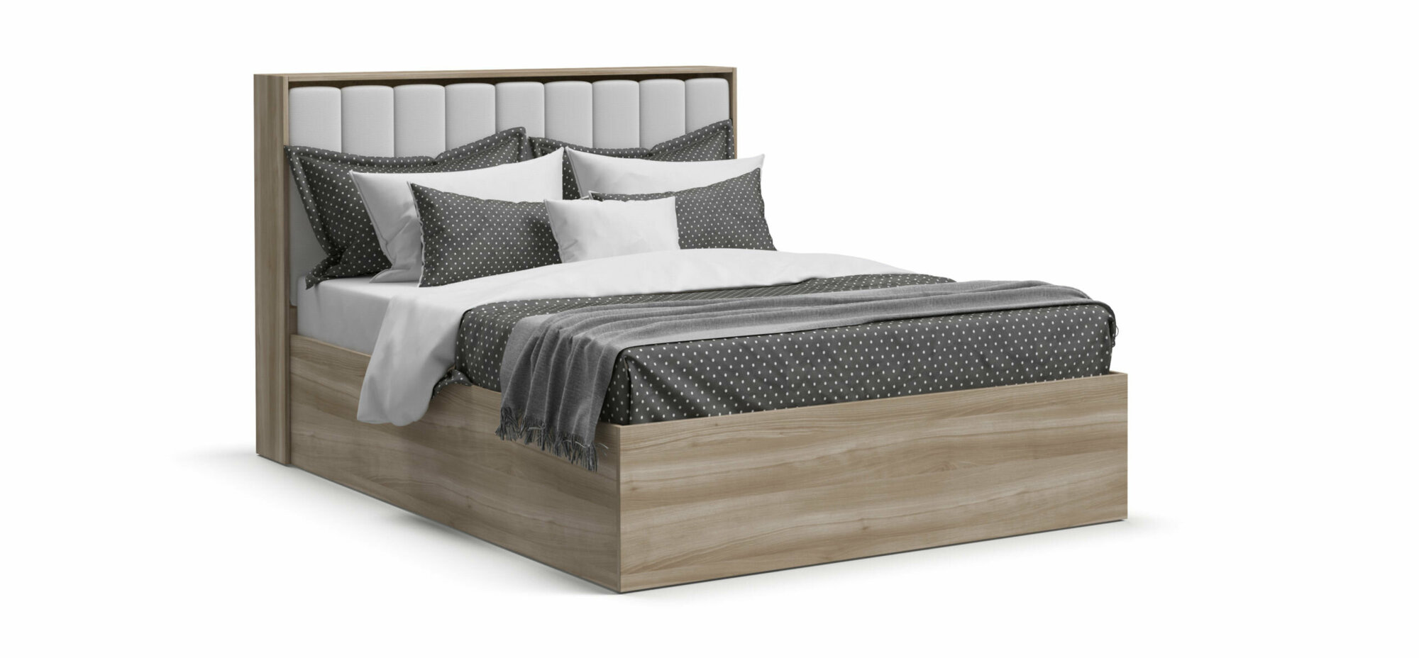 Двуспальная кровать Люкс 2.0, с подъемным механизмом, с мягким изголовьем, экокожа белая, цвет сонома, 140х200 см информация: