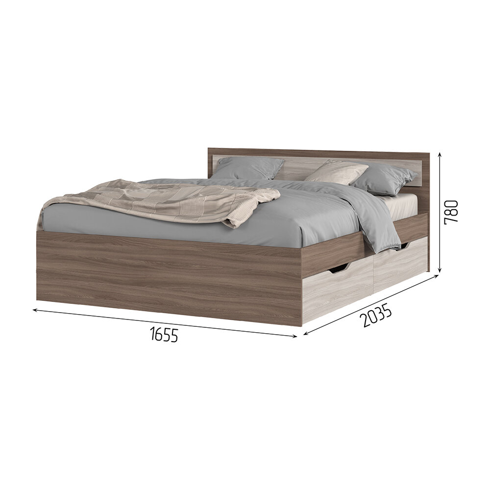 Кровать двуспальная Гармония с выдвижными ящиками для хранения (Виктория) 160х200 см, Дуб белфорт/Венге