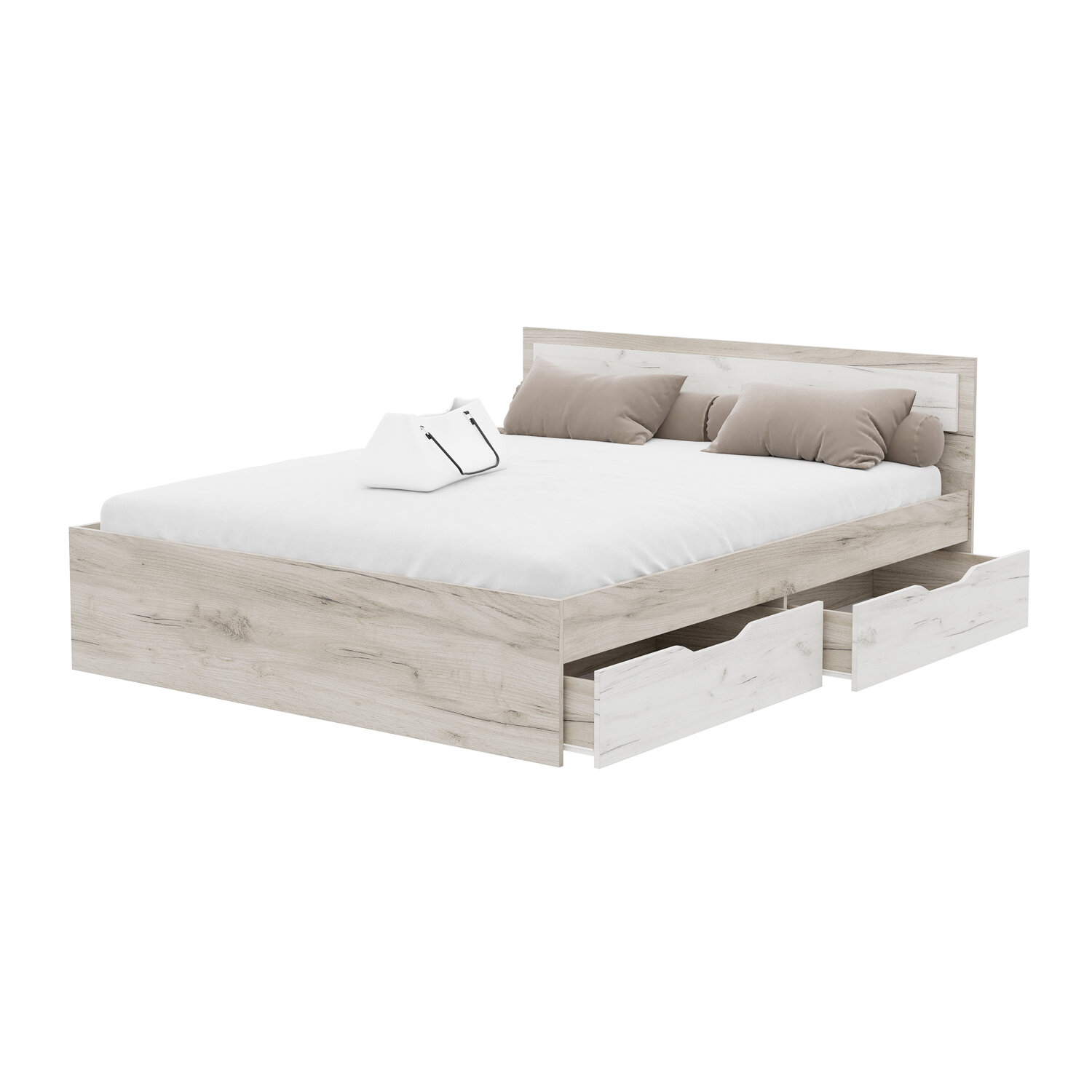 Кровать 160х200 двуспальная с ящиками, Гармония КР 604, Дуб Крафт Белый / Дуб Крафт Серый