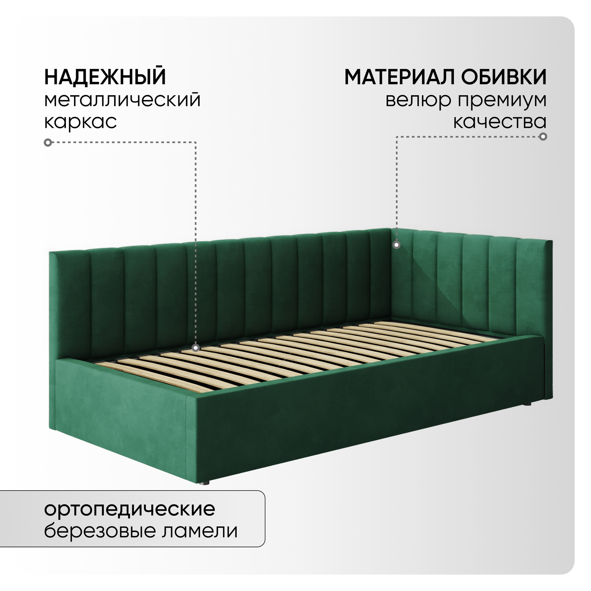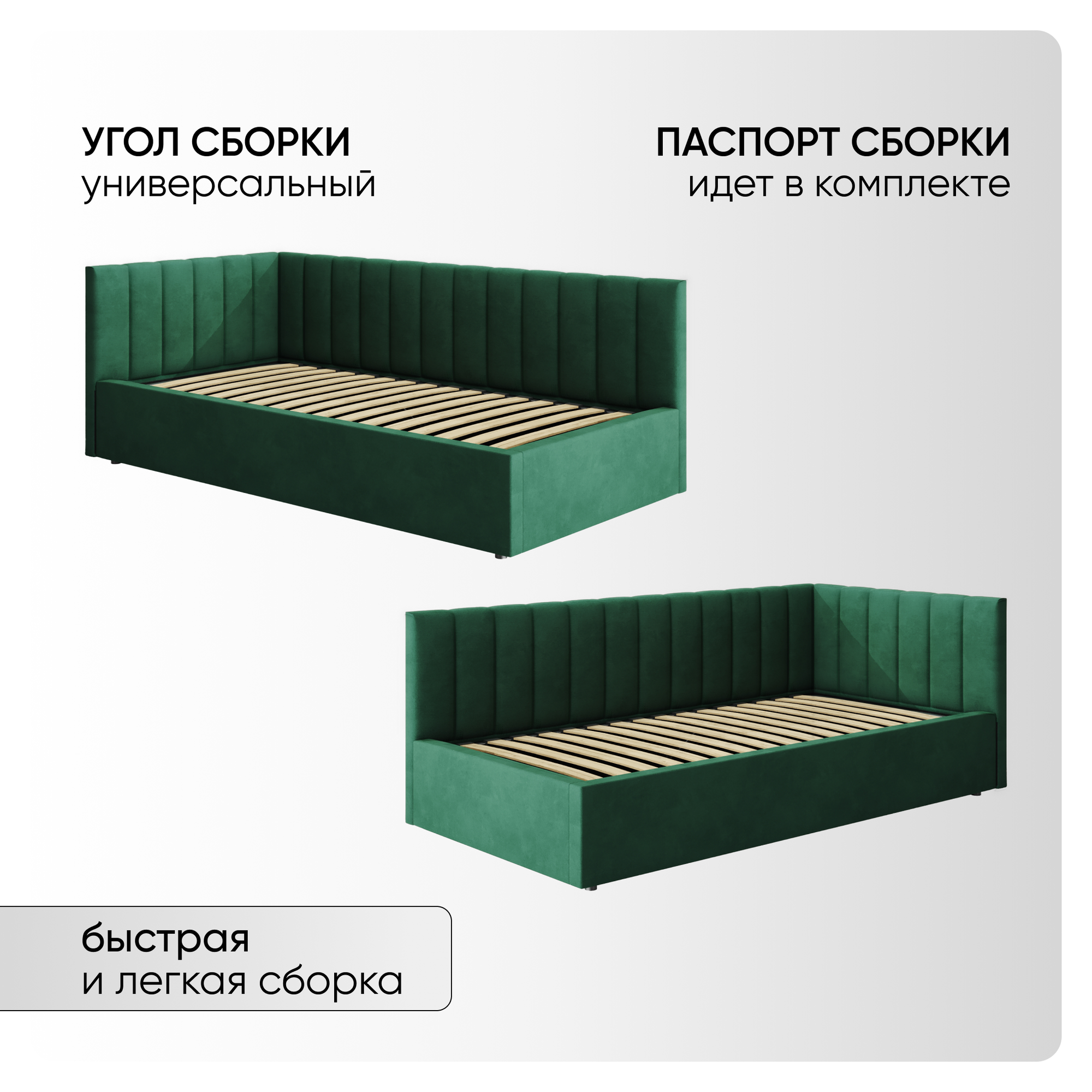10 цен на Односпальная угловая кровать 90х200 "Юлия" Зеленый-Велюр