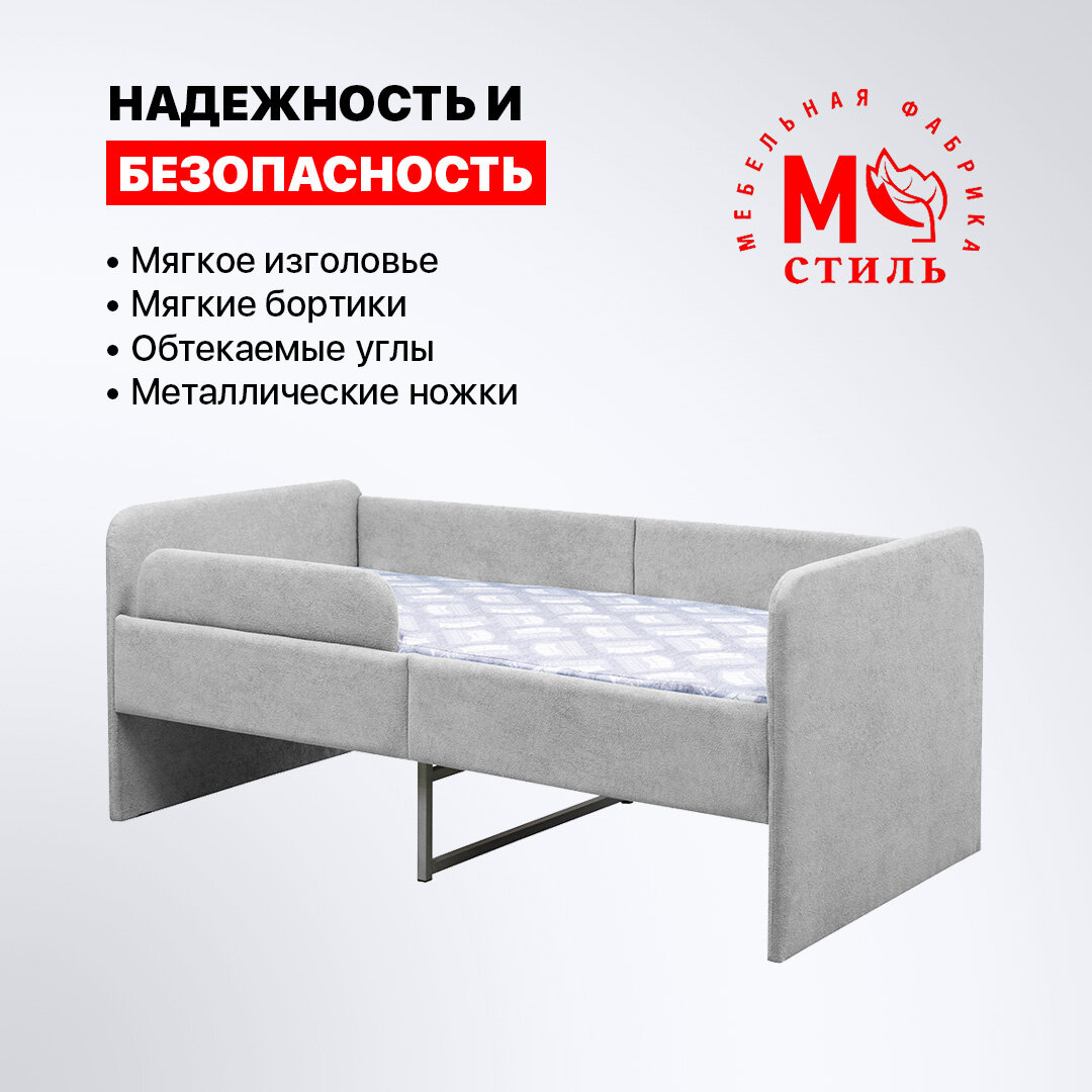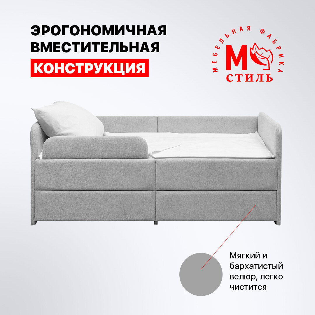 10 цен на Кровать детская Смайл серая с защитным бортиком и ящиками для хранения 1400*700