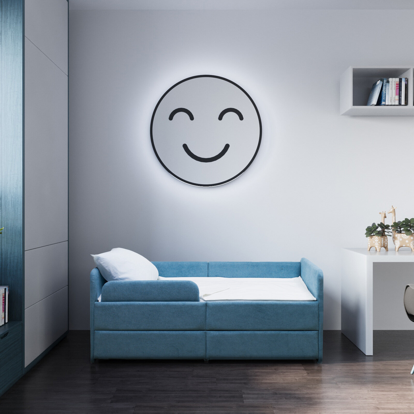 Отзывы на Кровать детская Смайл голубая с защитным бортиком и ящиками для хранения 1400*700