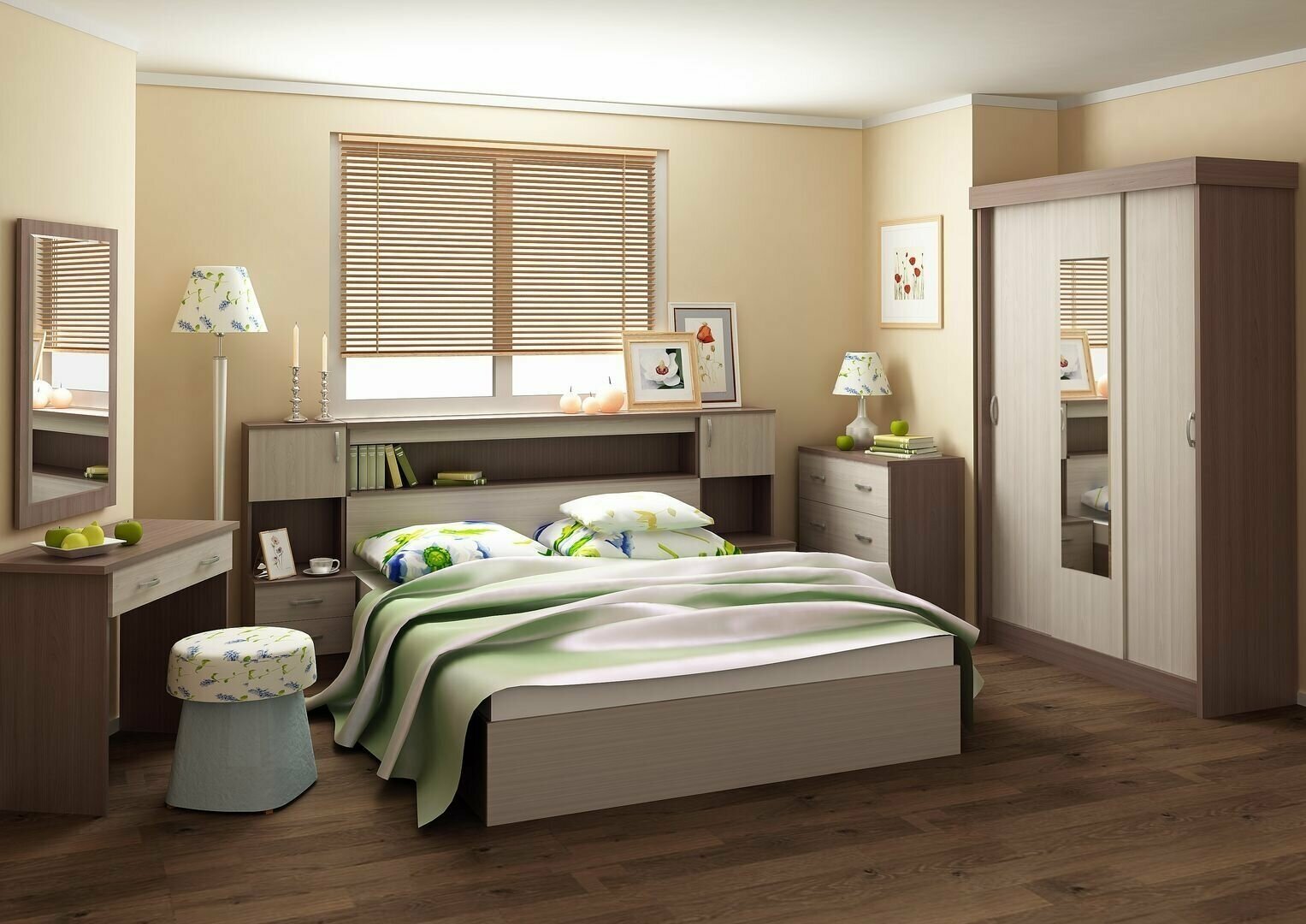 Кровать с закроватным модулем, габаритный размер: 2352x1024x2232 мм. Спальное место: 1600х2000 мм. Корпус: ЛДСП венге, фасад: ЛДСП дуб Белфорт 20 341 ₽