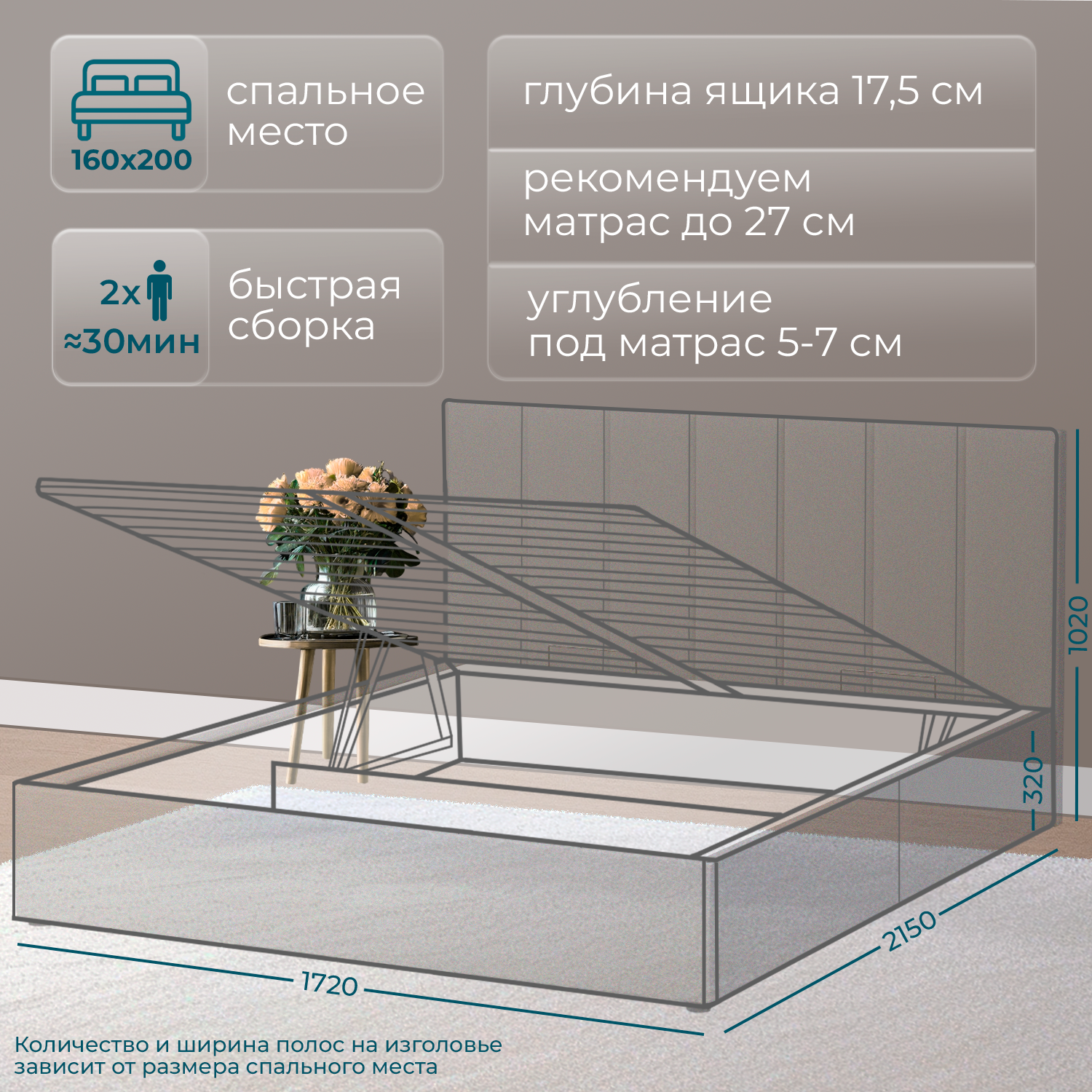 | Особенности | мягкое изголовье, с подъемным механизмом, с ящиком для белья |