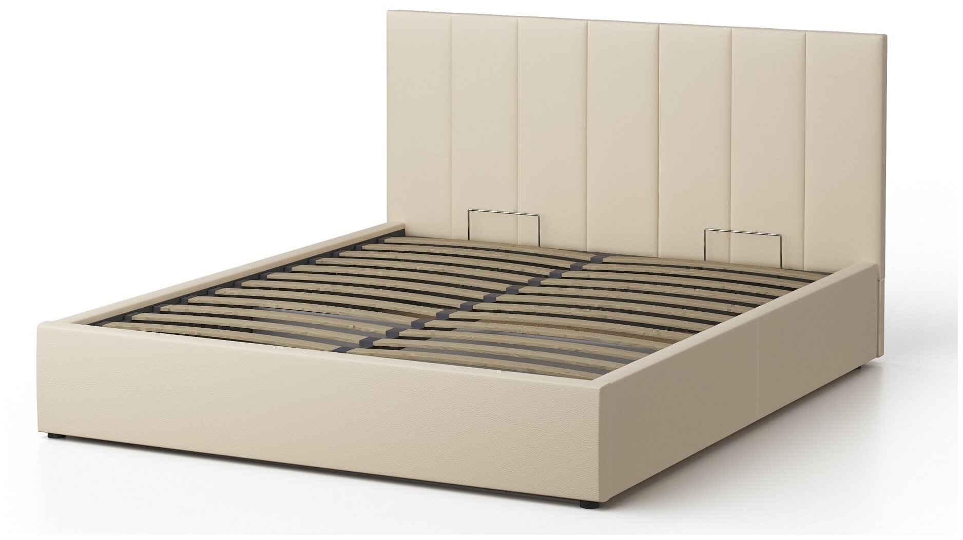 Кровать 160х200 с подъемным механизмом, двуспальная Венера-3 с мягким изголовьем для дома, для спальни, Ортопедическое основание, ящик для белья, бежевая экокожа, GALAXY Мебель 25 136 ₽