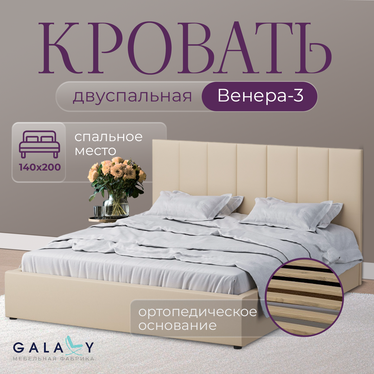 Кровать 140х200 с подъемным механизмом, двуспальная Венера-3 с мягким изголовьем для дома, для спальни, Ортопедическое основание, ящик для белья бежевая экокожа, GALAXY Мебель информация: