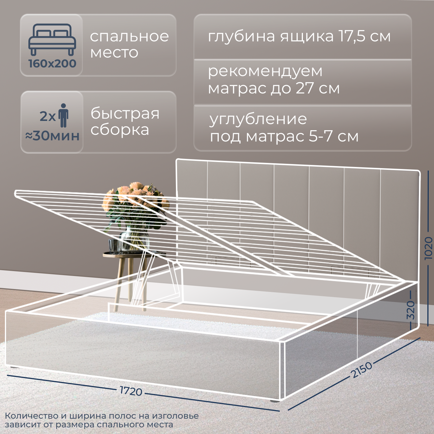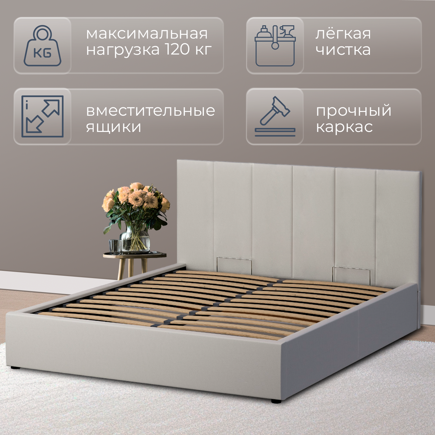 | Особенности | мягкое изголовье, с подъемным механизмом, с ящиком для белья |