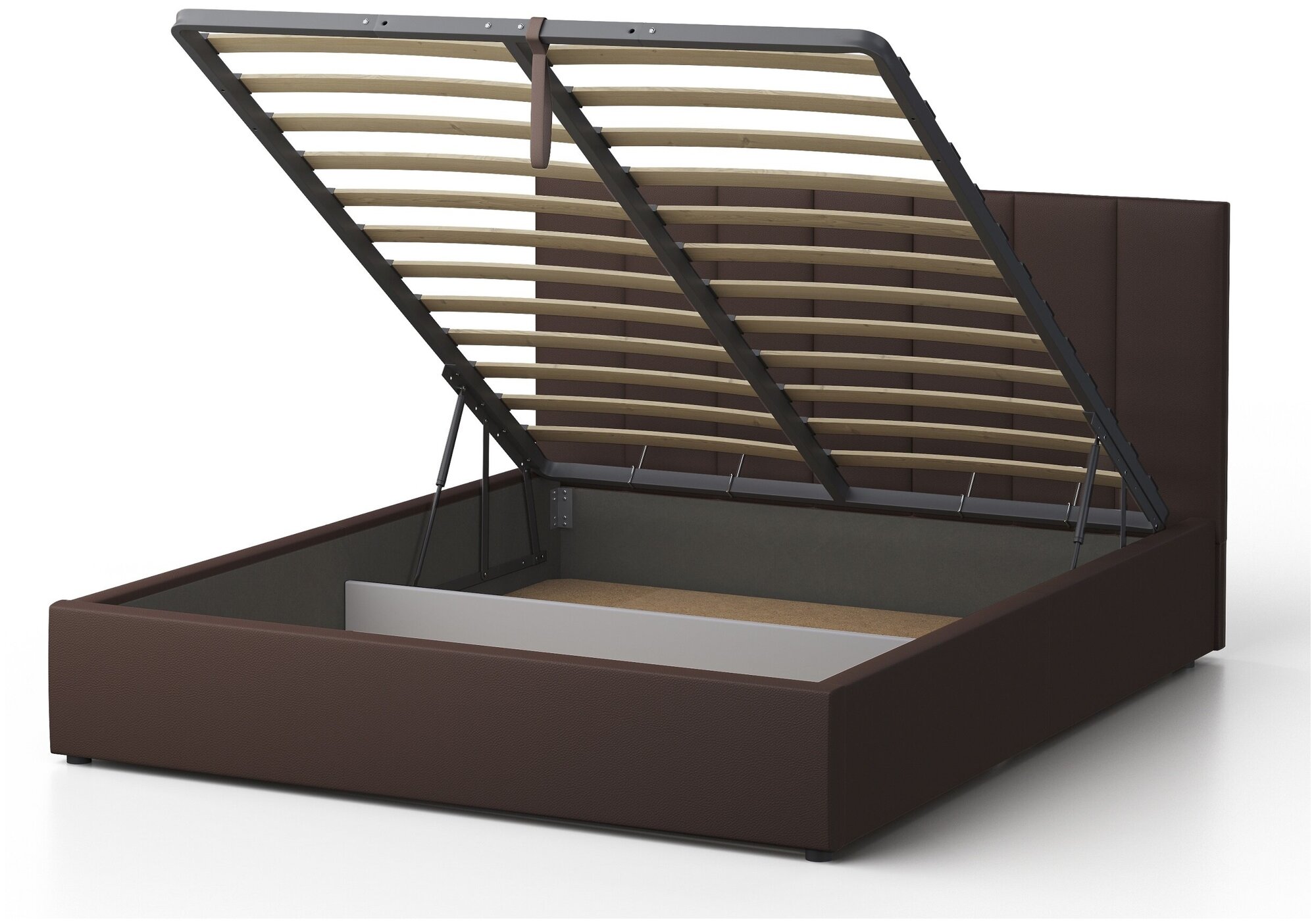 10 цен на Кровать 140х200 с подъемным механизмом, двуспальная Венера-3 с мягким изголовьем для дома, для спальни, Ортопедическое основание, ящик для белья, коричневая экокожа. GALAXY Мебель