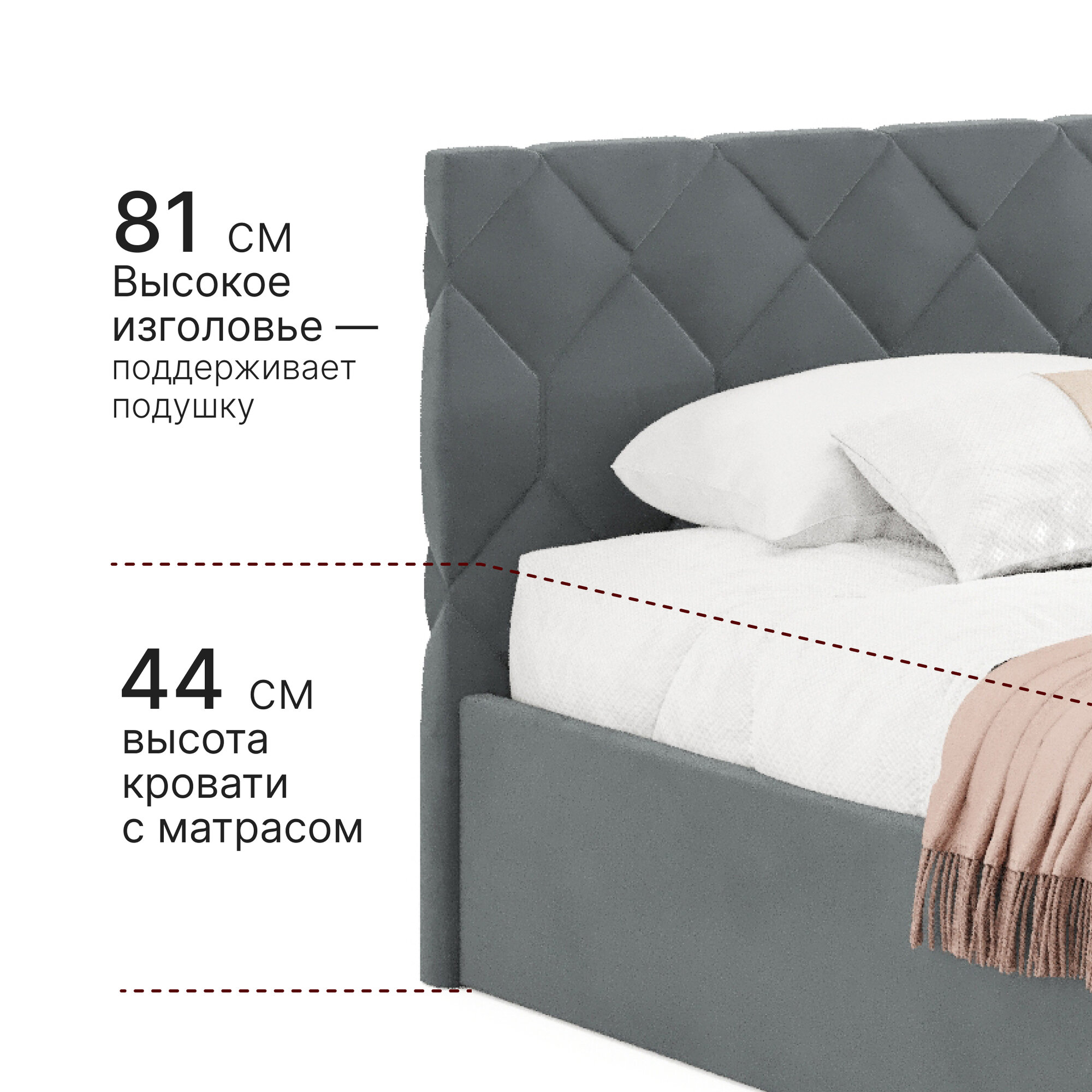| Особенности | мягкое изголовье, с подъемным механизмом, с ящиком для белья |