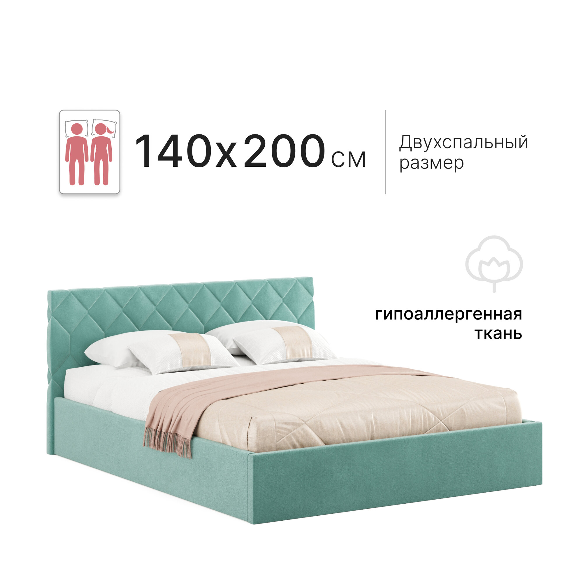 Кровать 140х200 c подъемным механизмом и местом для хранения Техас New мятный информация:
