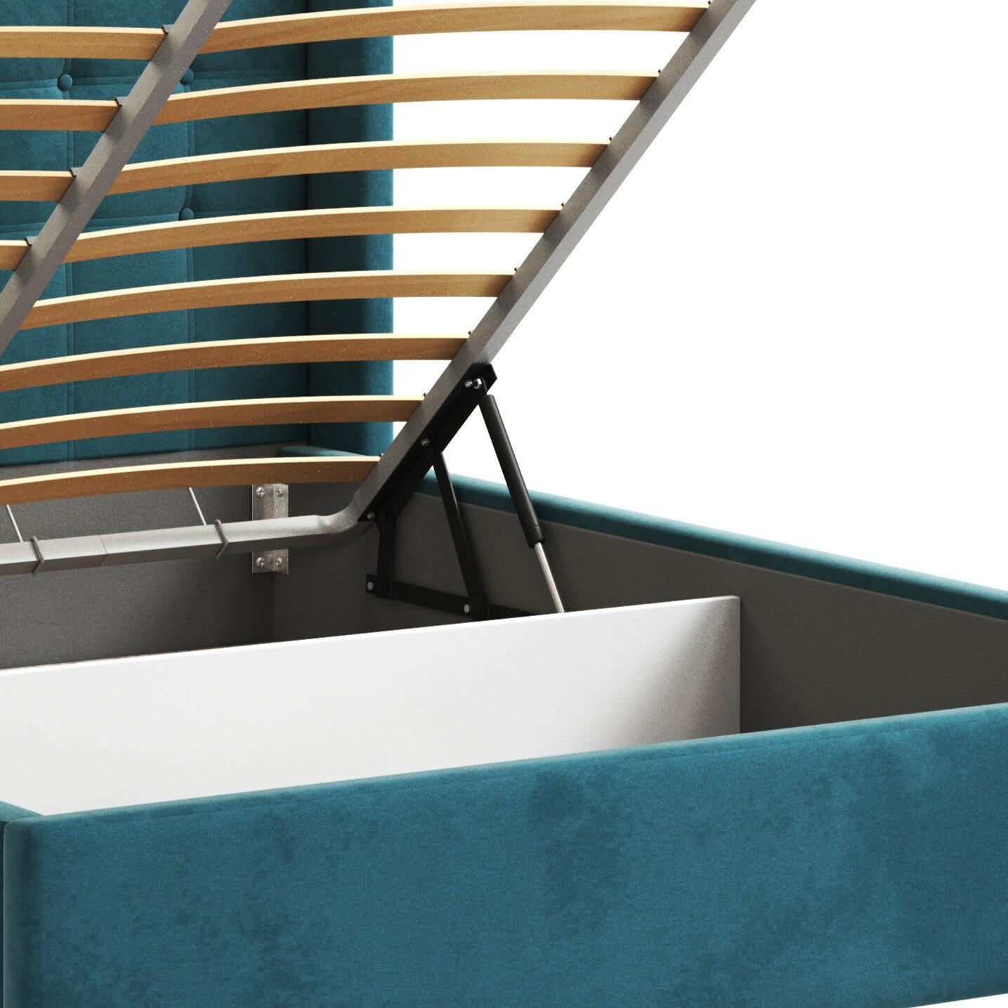 Кровать 140х200 с подъемным механизмом, двуспальная Венера-9 (3) с мягким изголовьем для дома, для спальни, Ортопедическое основание, ящик для белья, велюр Lagoon, GALAXY Мебель 28 450 ₽