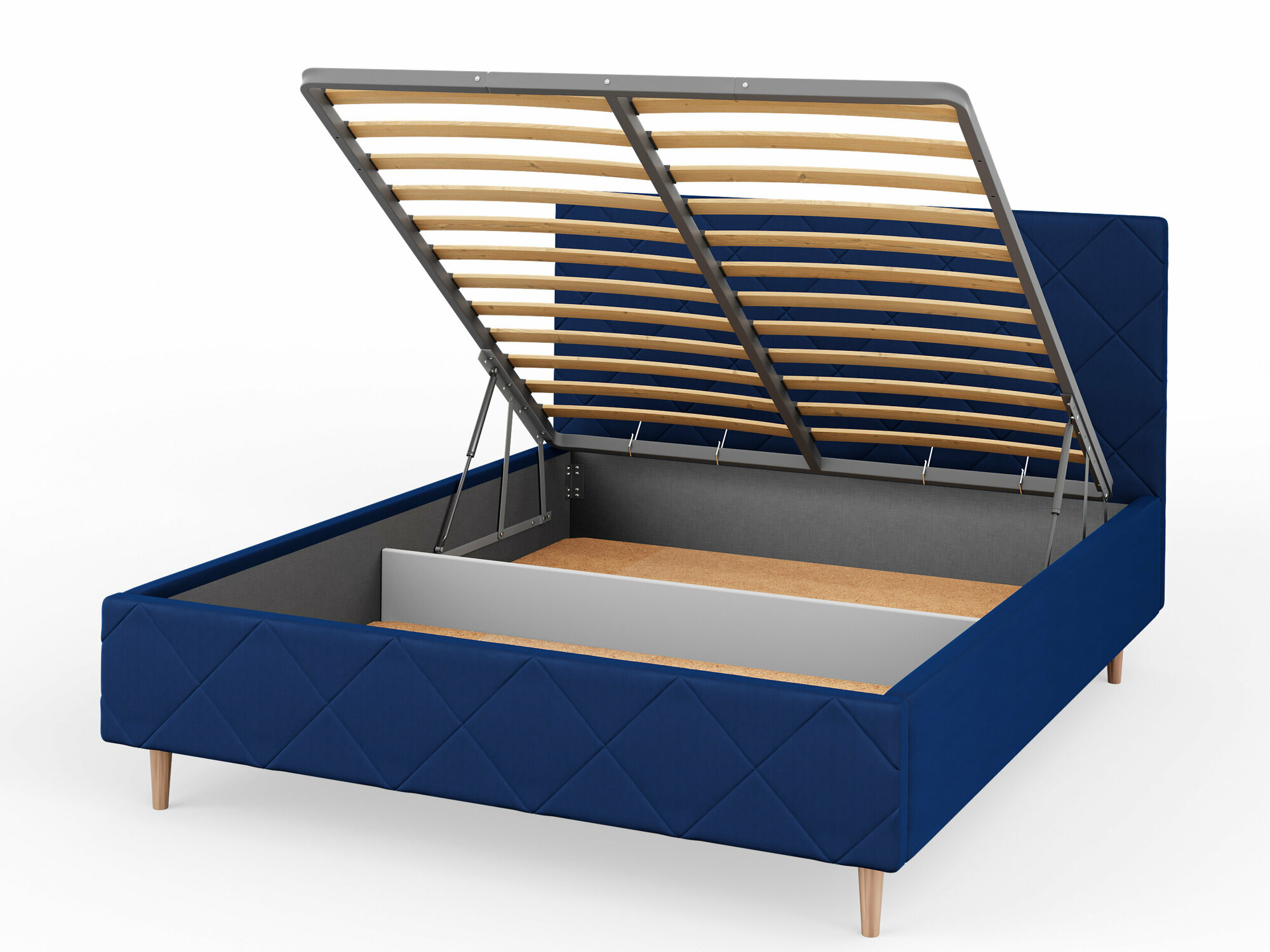 10 цен на Кровать 160х200 с подъемным механизмом, двуспальная Афина-1 (Ромбы) с мягким изголовьем для дома, для спальни, Ортопедическое основание, ящик для белья, синий велюр, GALAXY Мебель